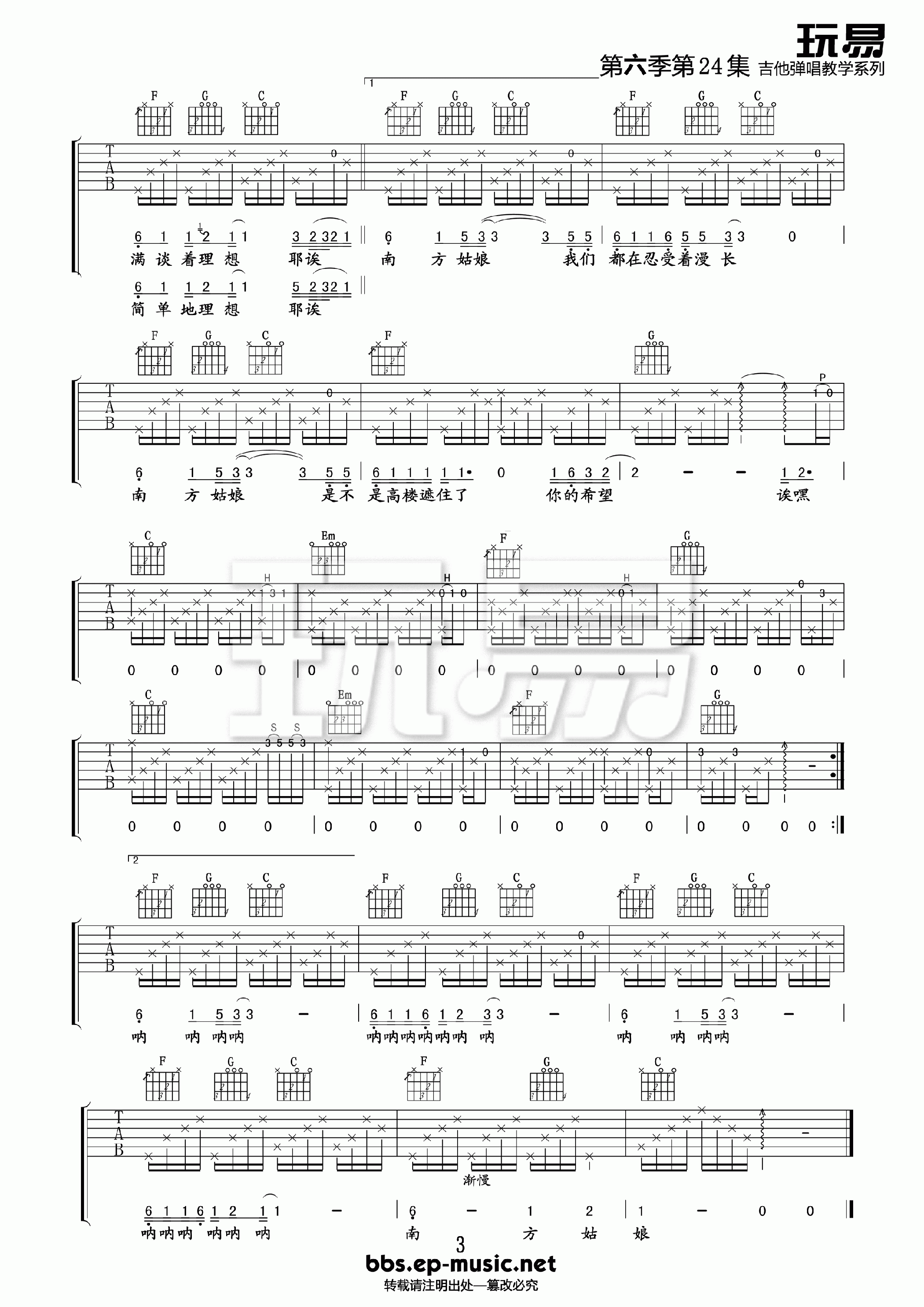 吉他弹唱C调来源:玩易乐器296 浏览2024-01-21 20:24发布图谱共3页