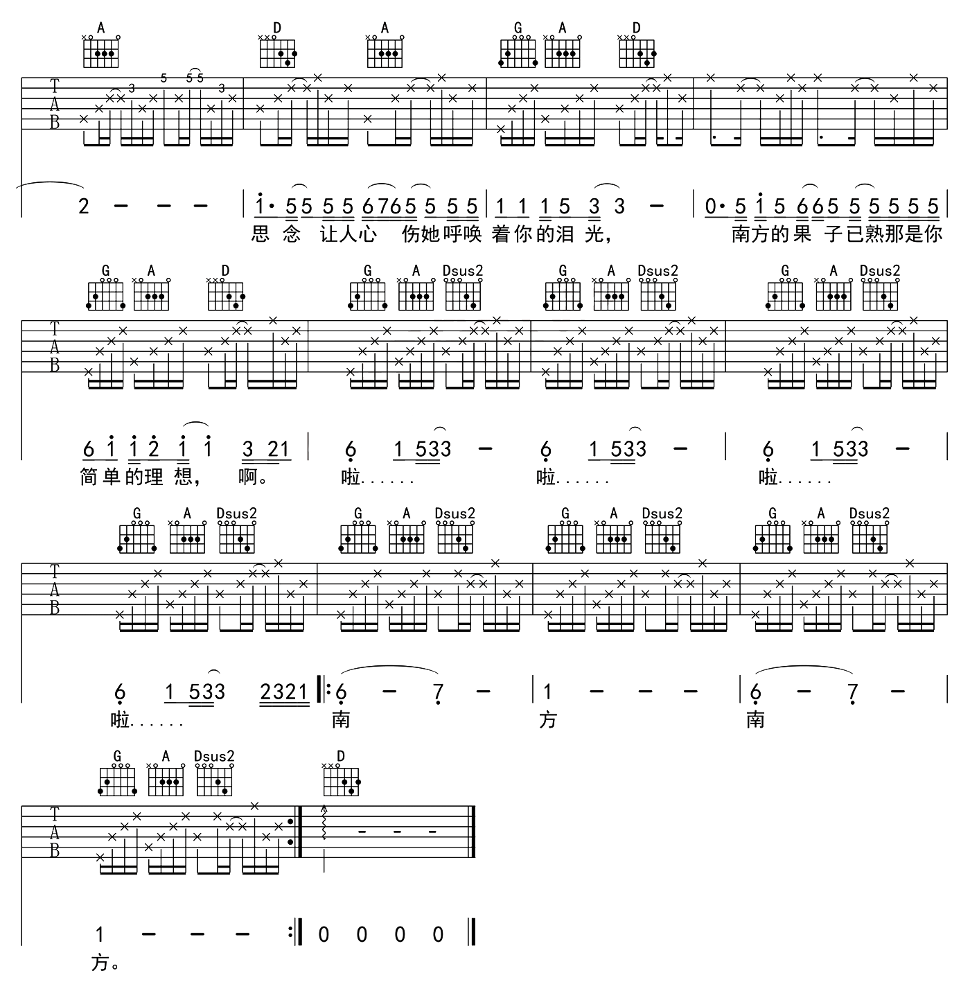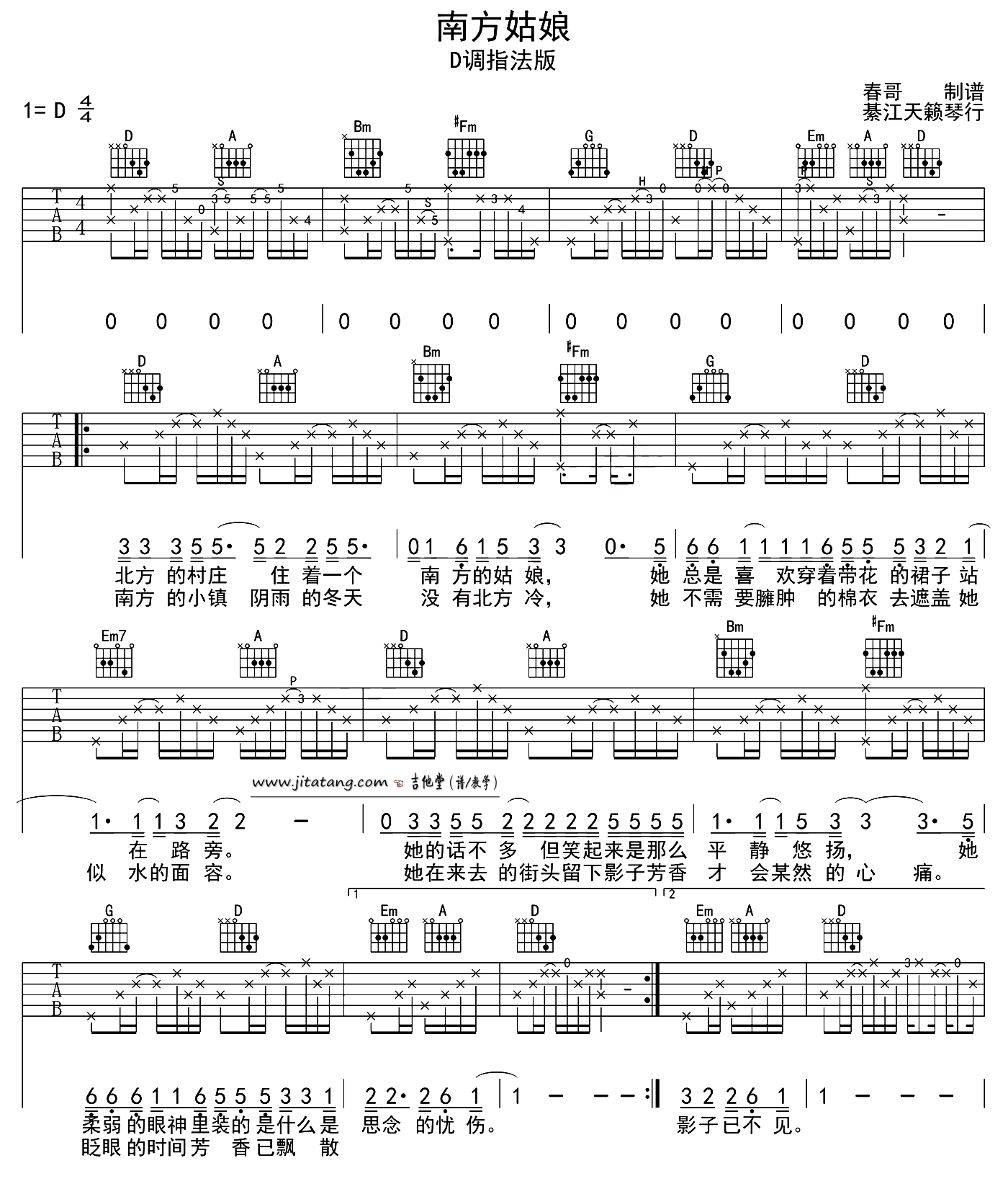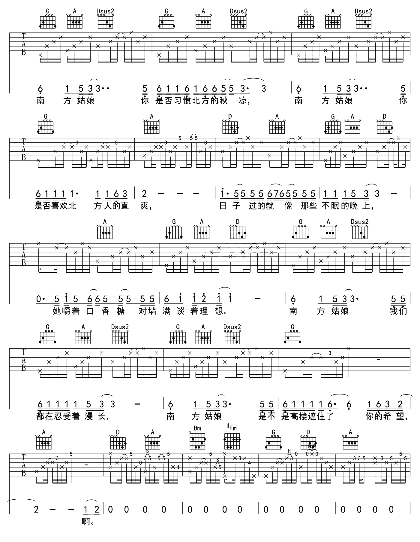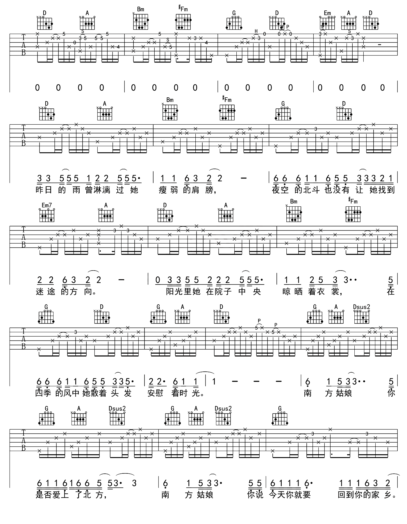 当前位置:琴谱网>吉他弹唱>南方姑娘