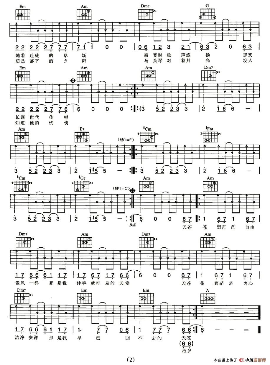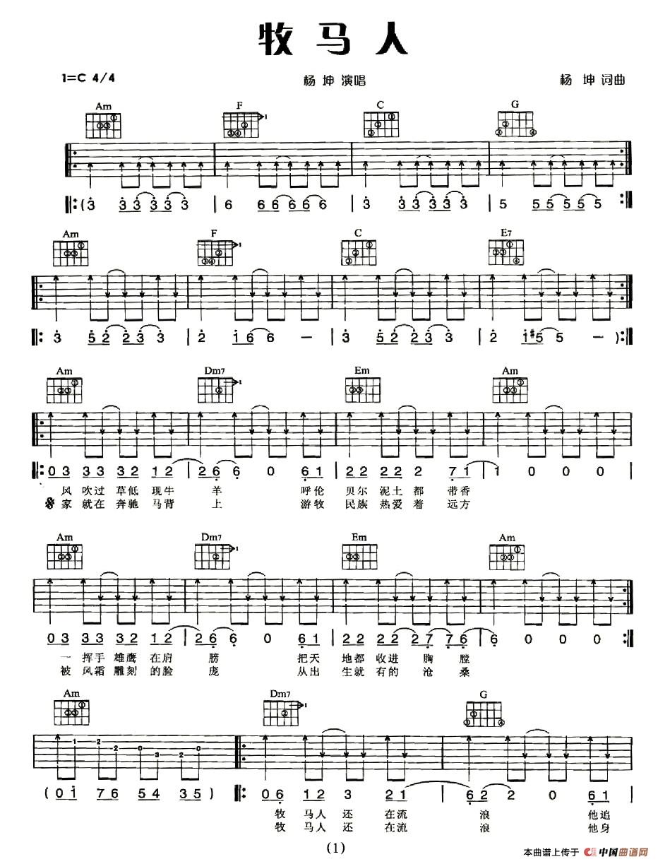 牧马人吉他谱 - 杨坤 - C调吉他弹唱谱
