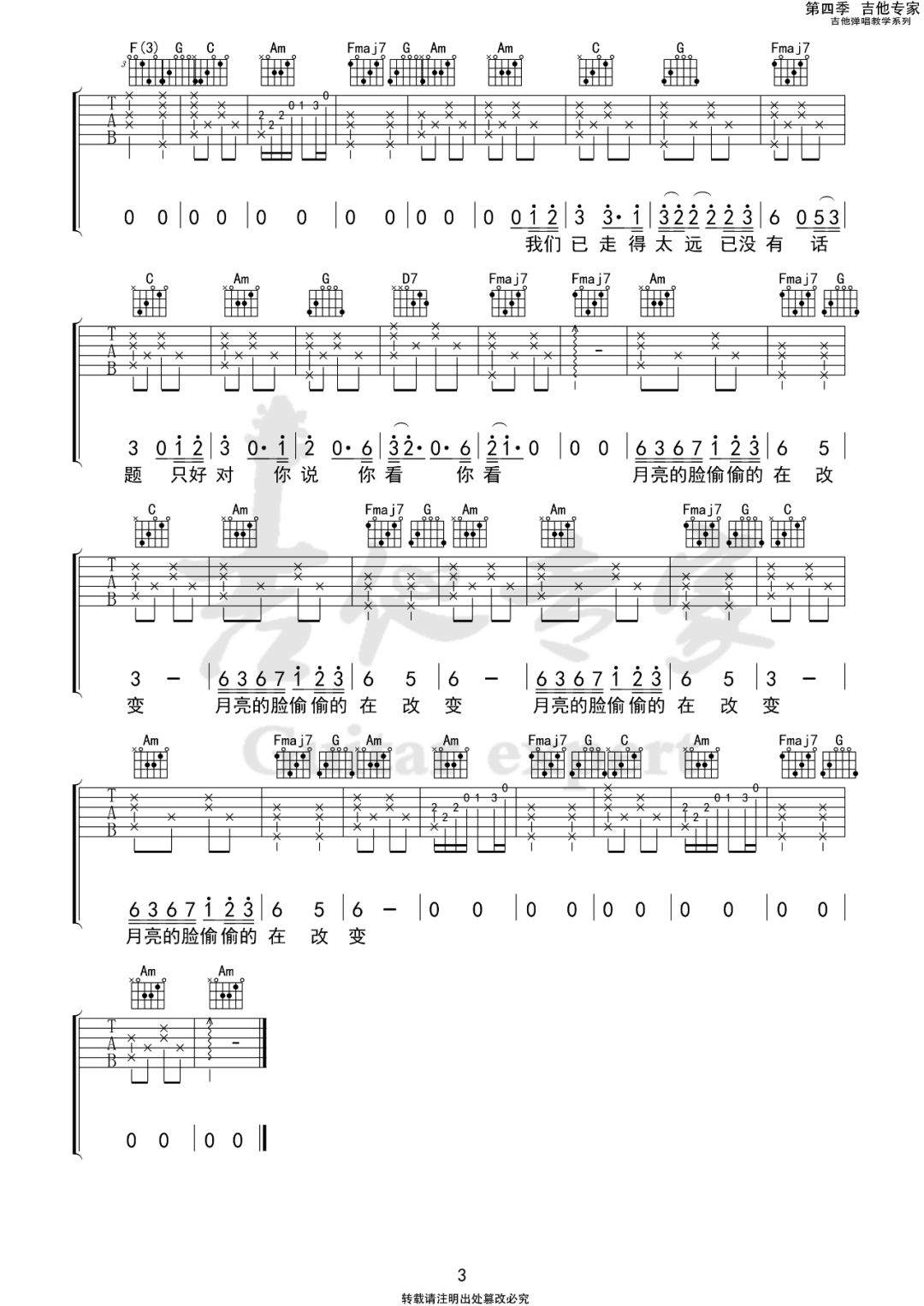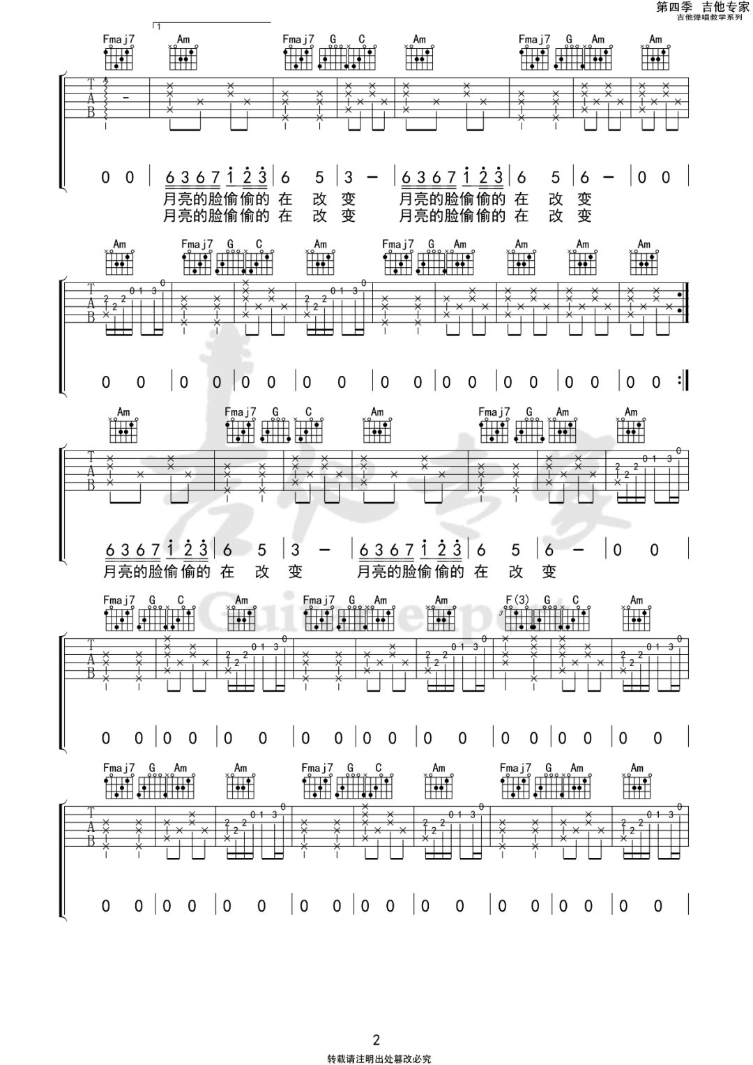 当前位置:琴谱网>吉他弹唱>你看你看月亮的脸