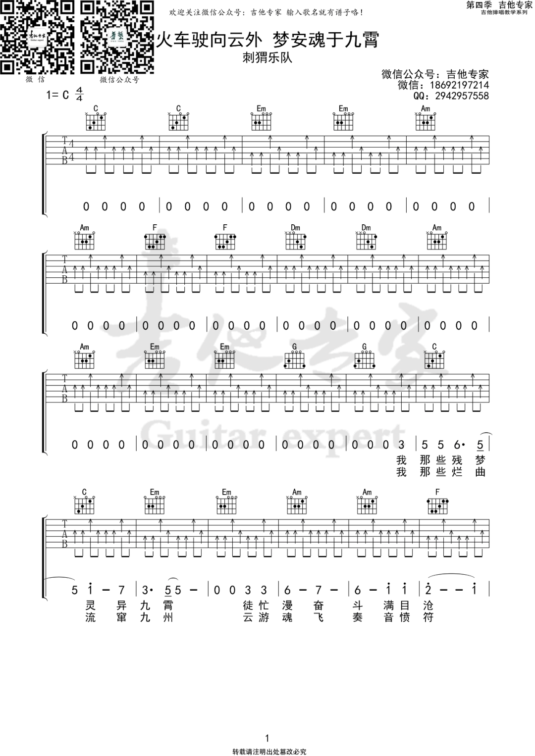 当前位置:琴谱网>吉他弹唱>火车驶向云外梦安魂于九霄