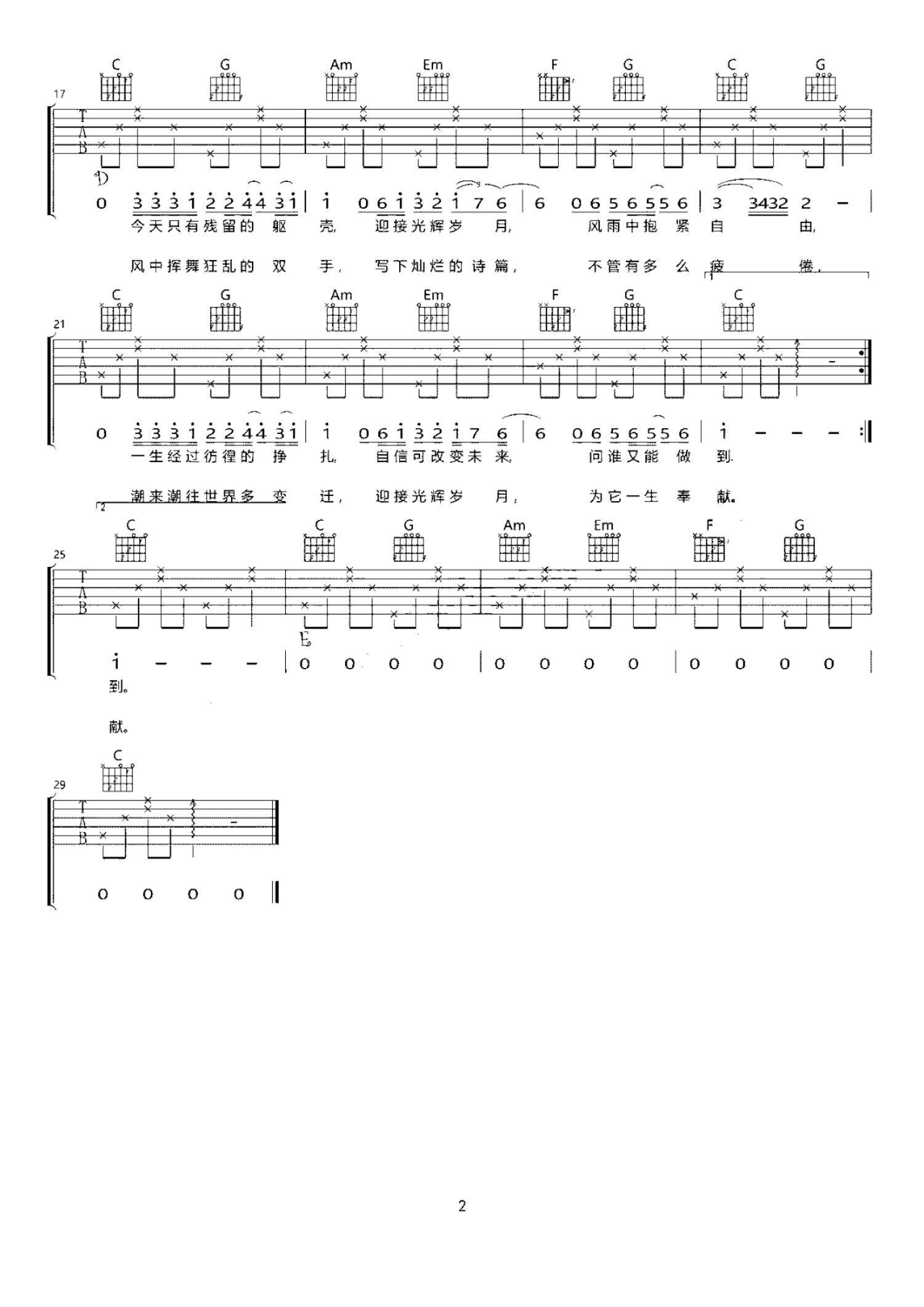 吉他弹唱C调来源:盛勇1458 浏览2018-03-19 13:34发布图谱共2页