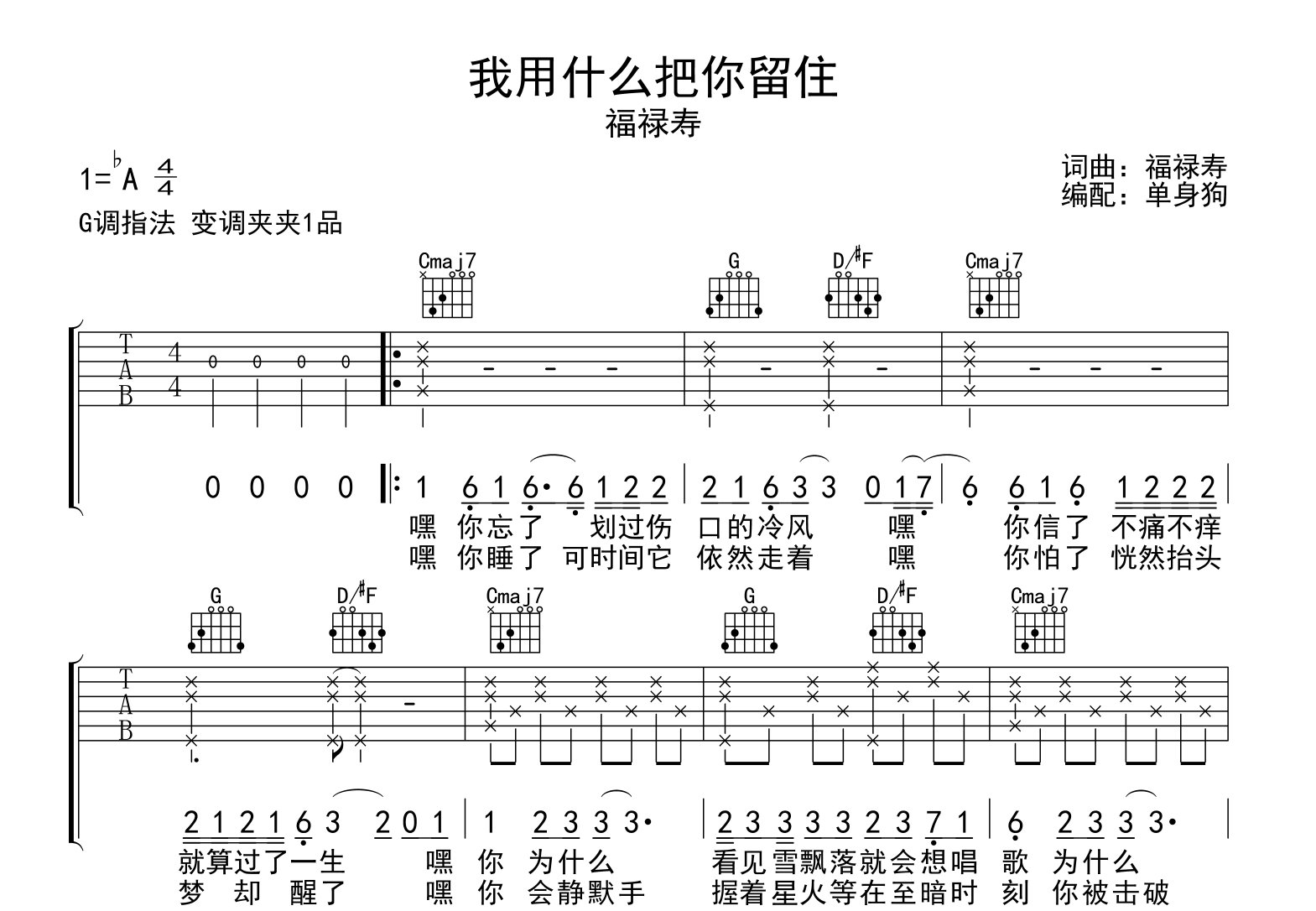 我用什么把你留住吉他谱 - 福禄寿 - G调吉他弹唱谱