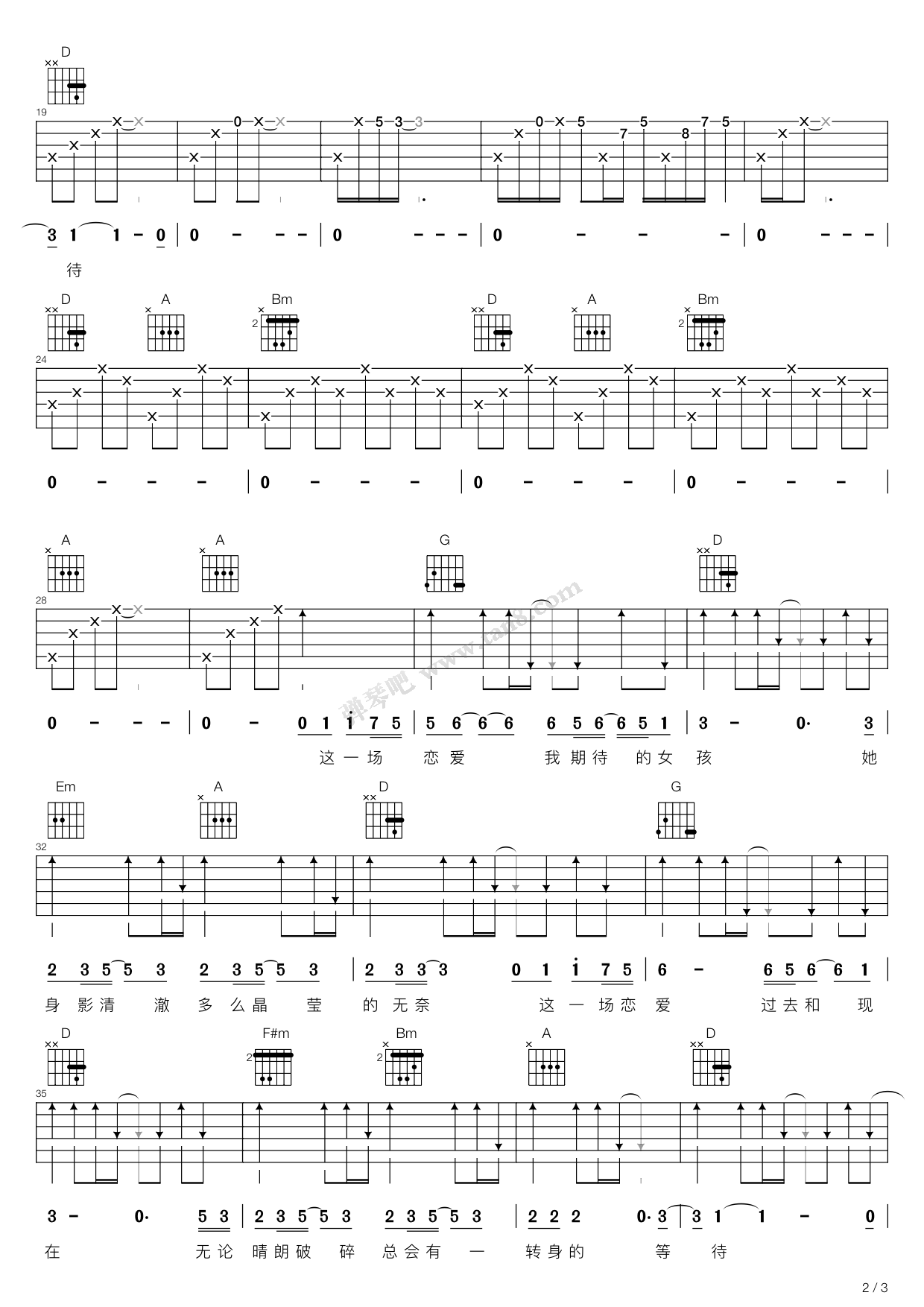 吉他弹唱D调来源:弹吧113 浏览2024-01-21 21:01发布图谱共3页