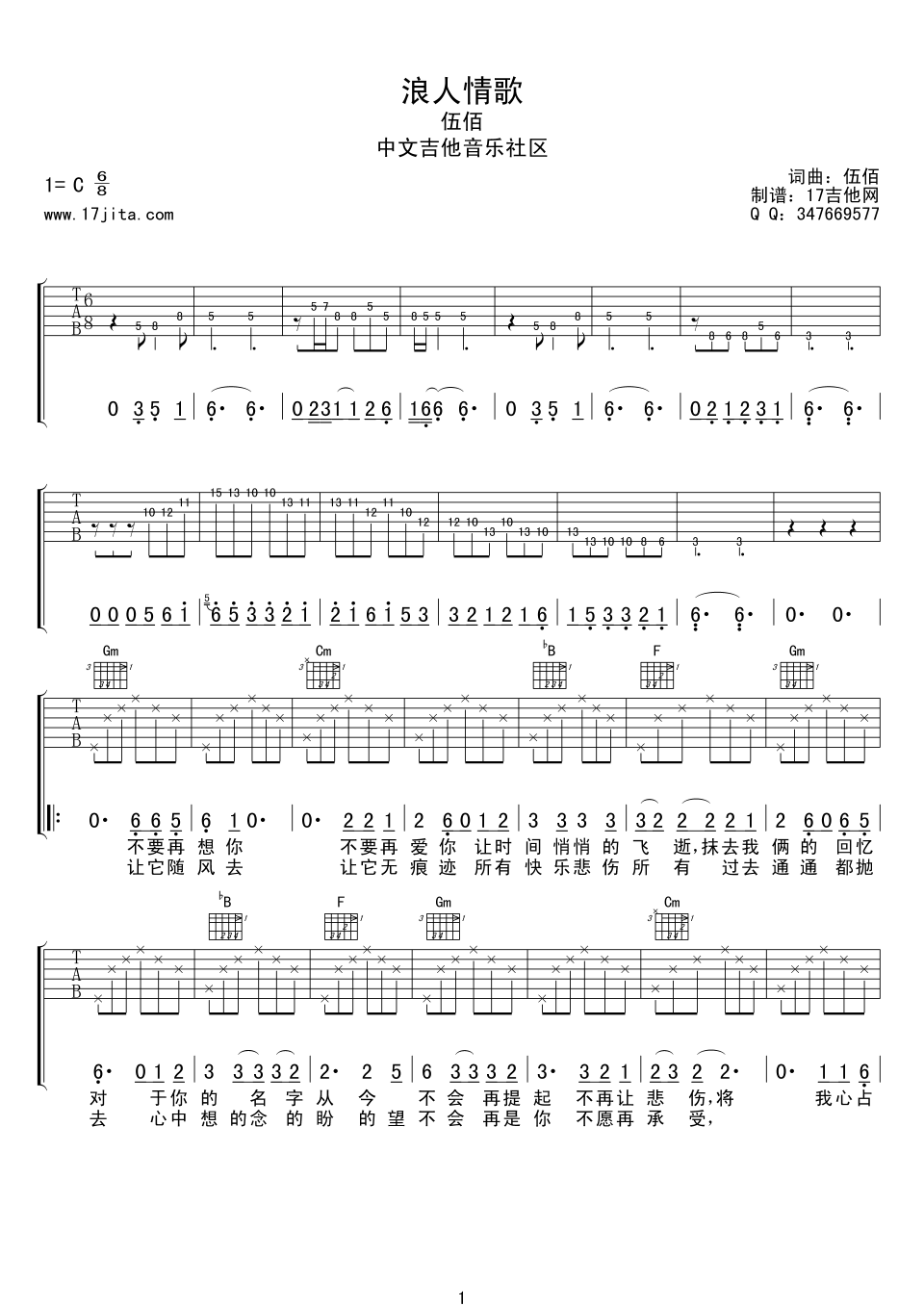 吉他弹唱C调来源:简单超燃版本_17吉他网736 浏览2024-01-21 20:56发布图谱共3页