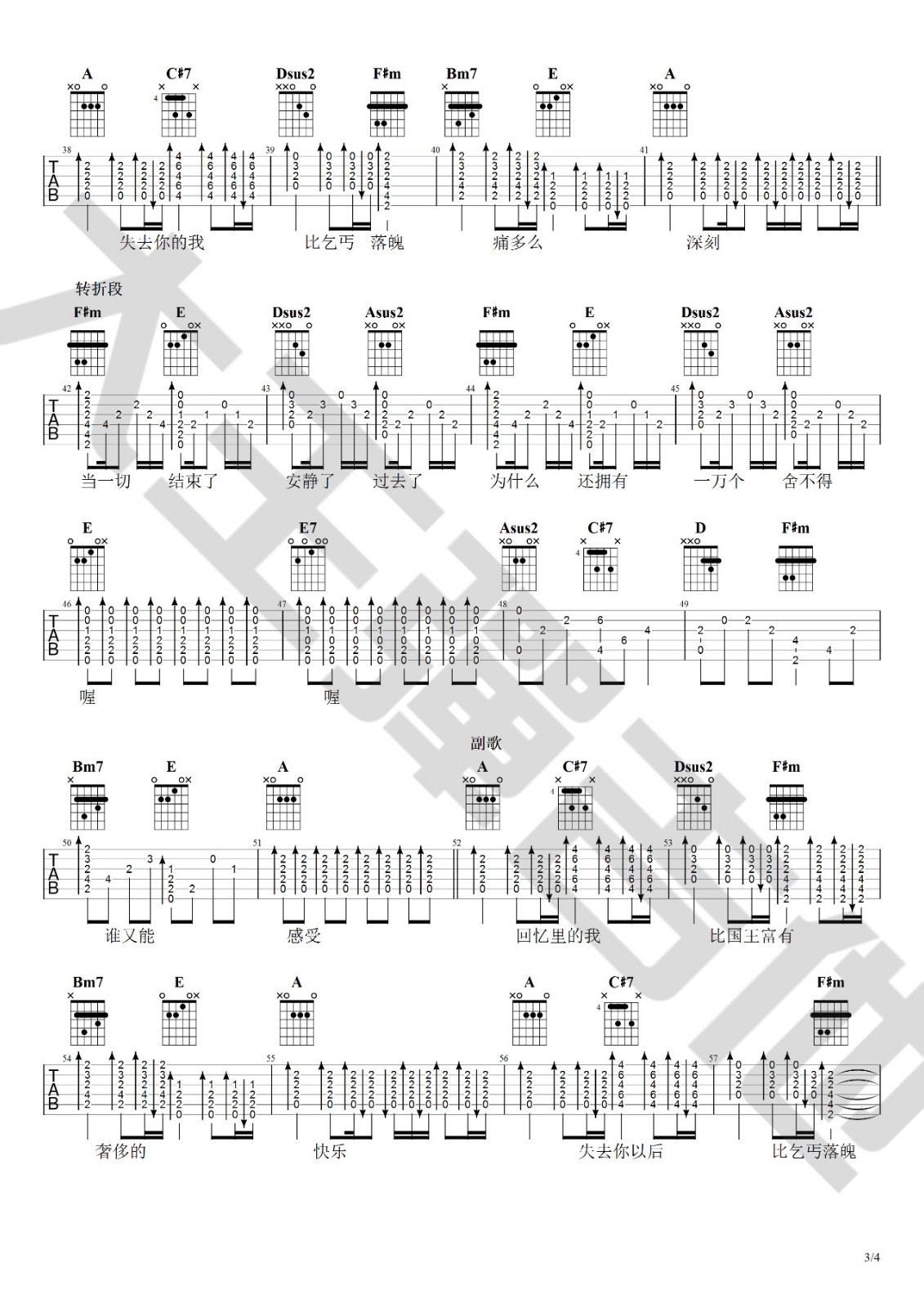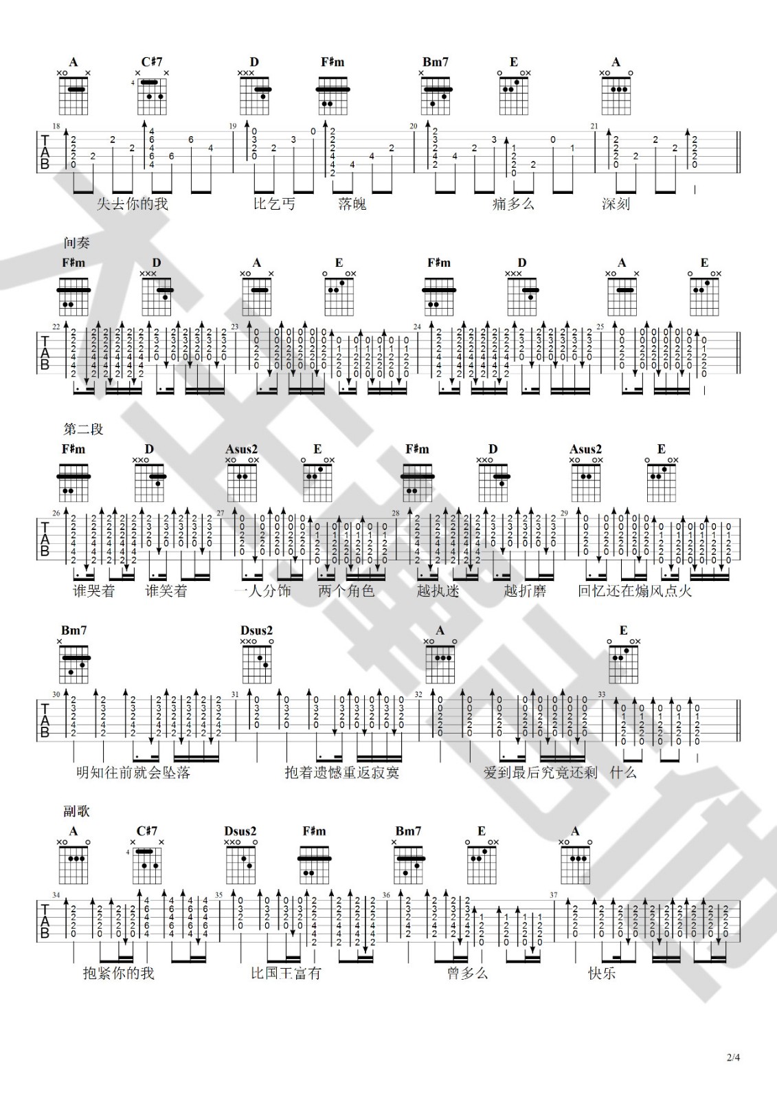吉他弹唱A调来源:大王弹吉他201 浏览2024-01-21 21:32发布图谱共5页