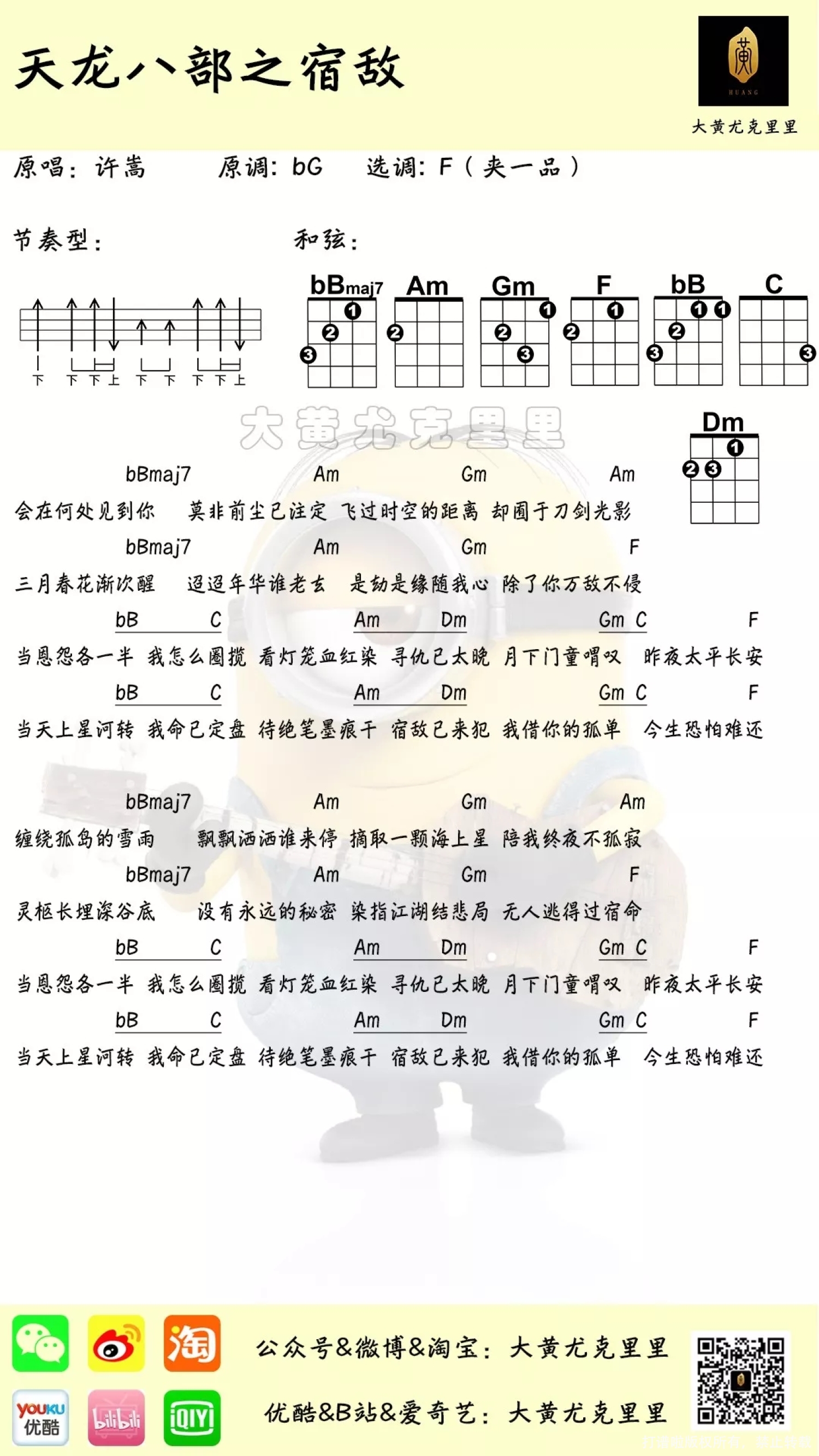 曲谱介绍: 许嵩《天龙八部之宿敌》尤克里里谱,共有1张高清图谱,免翻页排版设计。