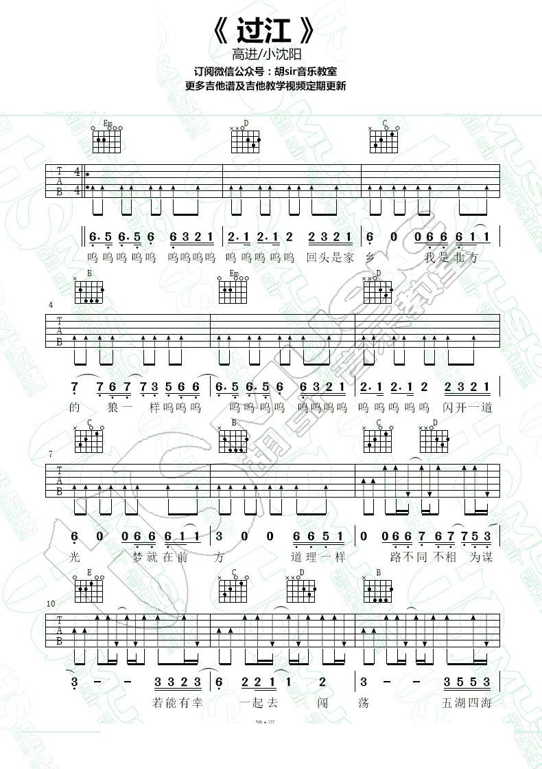 曲谱介绍: 高进/小沈阳《过江》吉他弹唱谱,采用G调指法编配,胡Sir吉他编配出品,共有2张高清图谱,免翻页排版设计。