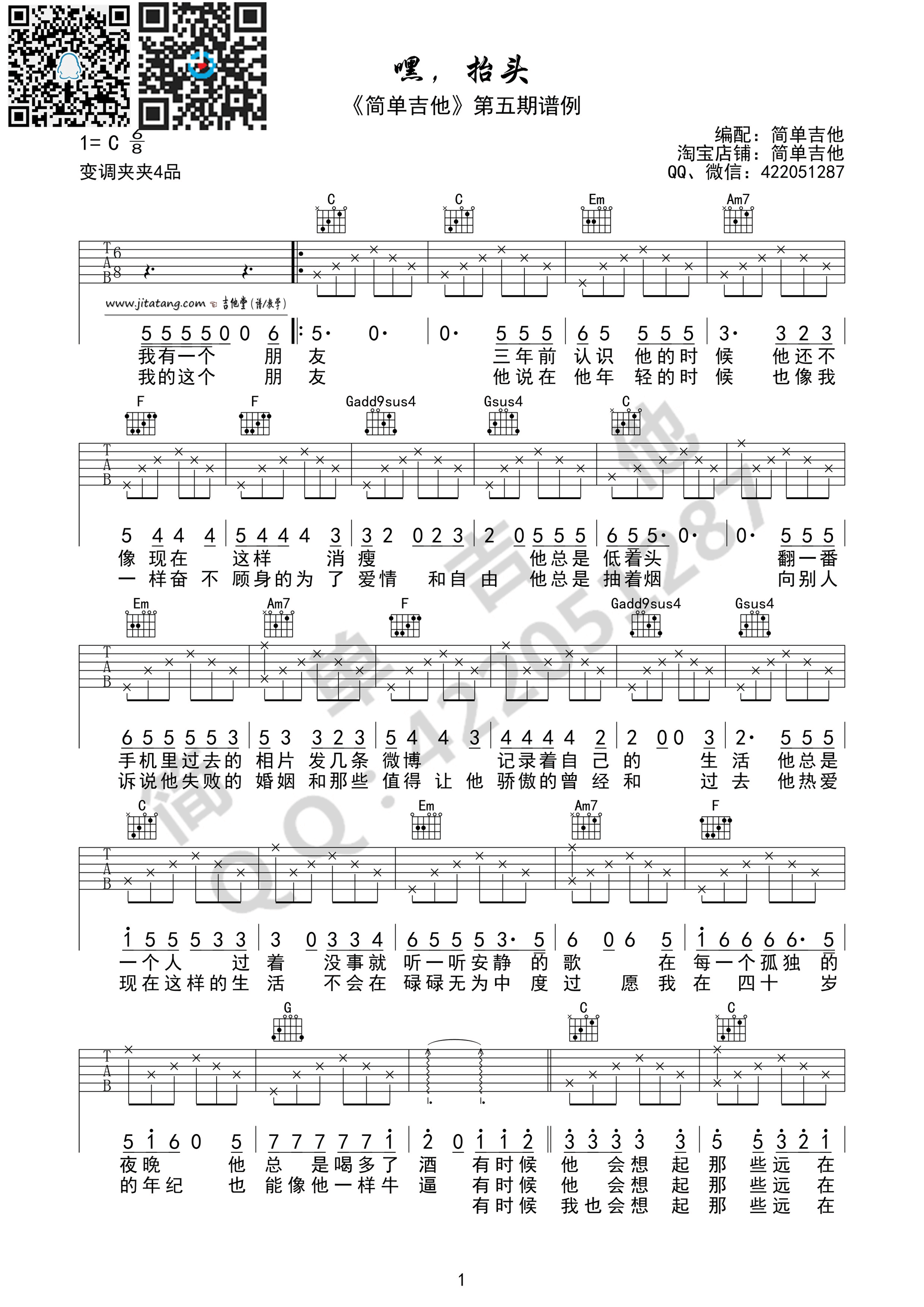 当前位置:琴谱网>吉他弹唱>嘿,抬头