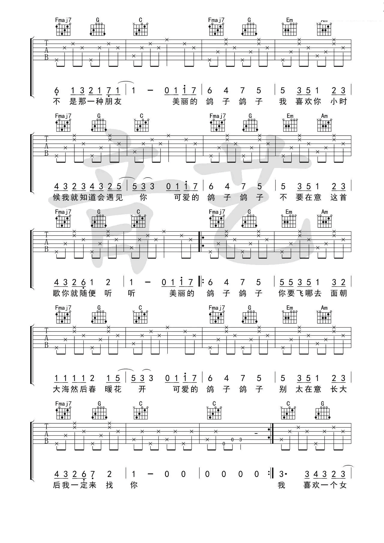 当前位置:琴谱网>吉他弹唱>鸽子