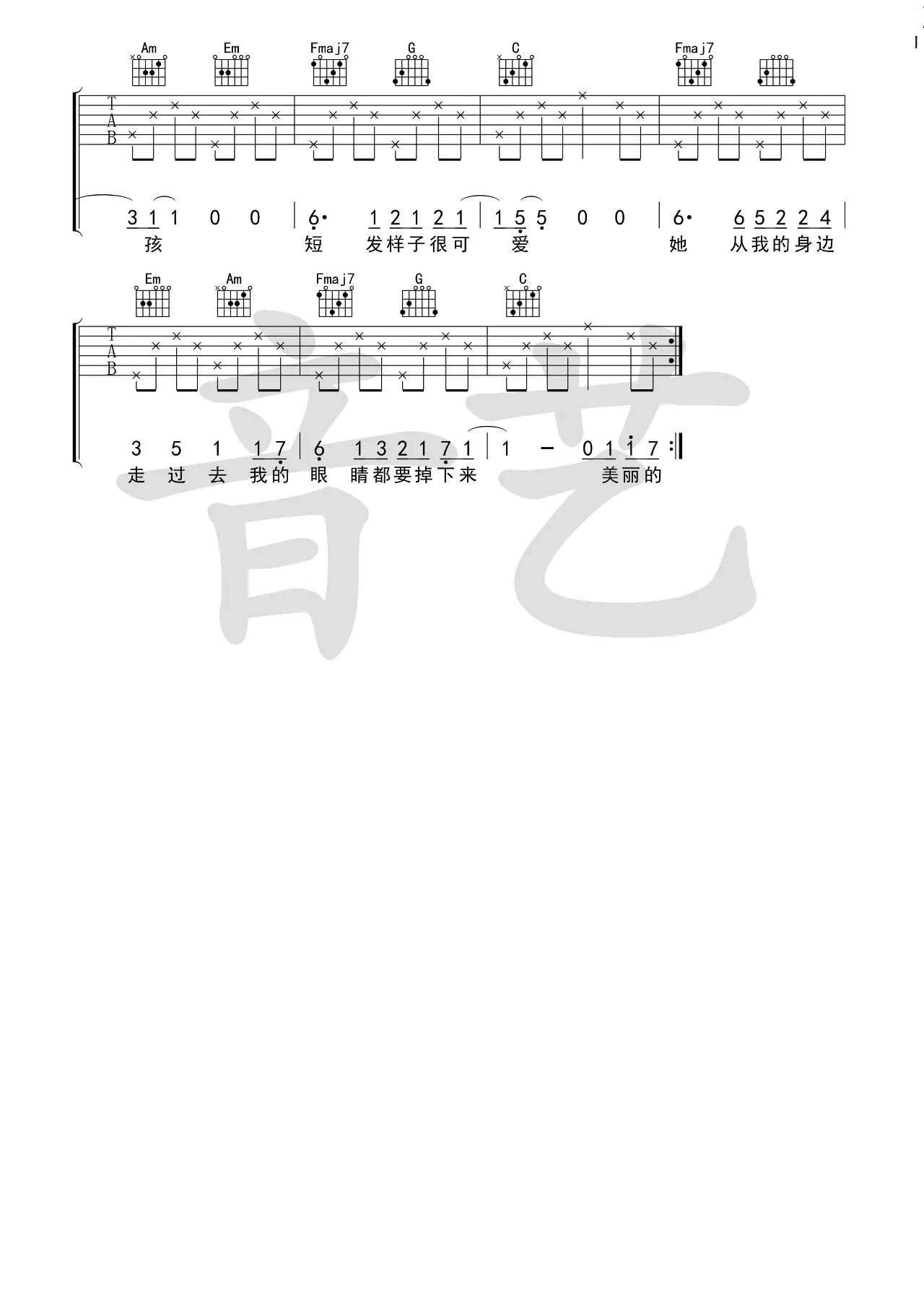 吉他弹唱C调来源:音艺吉他155 浏览2024-01-21 22:00发布图谱共3页