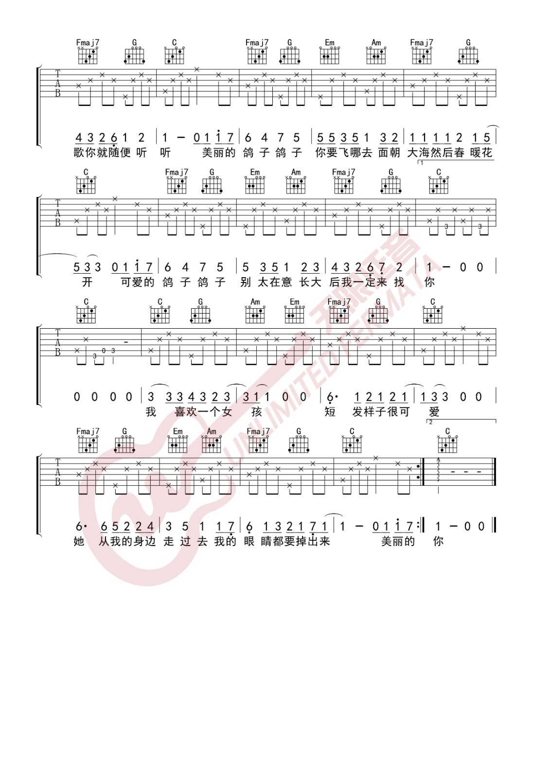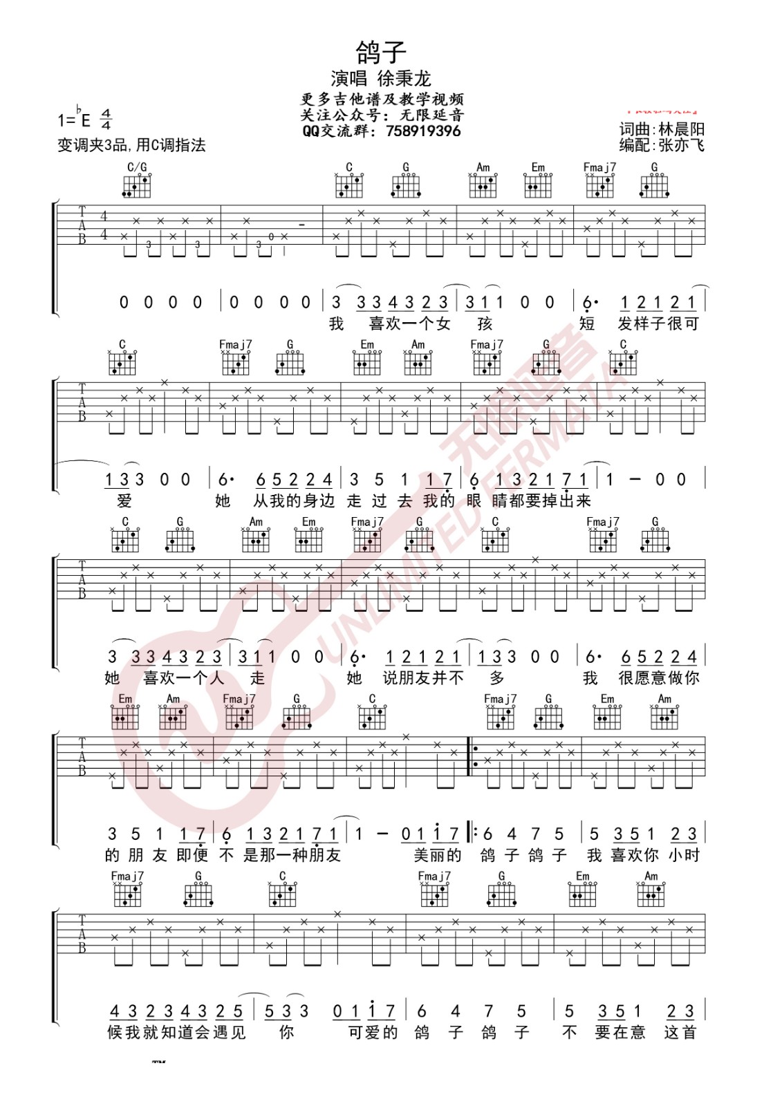 曲谱介绍: 徐秉龙《鸽子》吉他弹唱谱,采用C调指法编配,无限延音编配出品,共有2张高清图谱,免翻页排版设计。