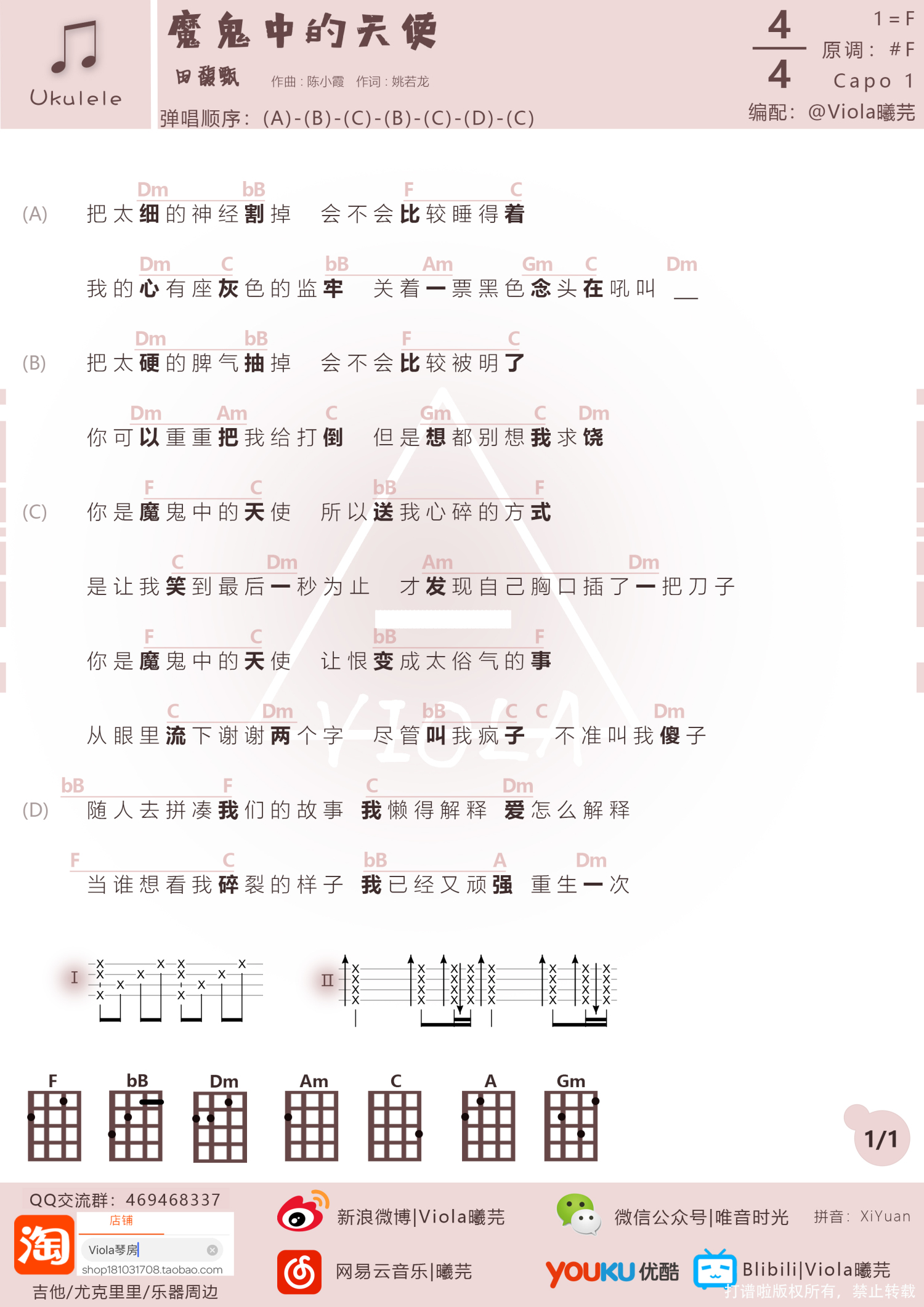 魔鬼中的天使尤克里里谱 - 田馥甄