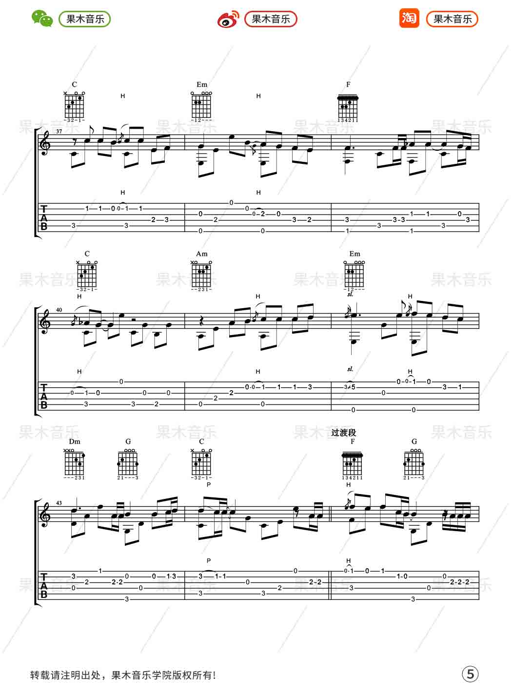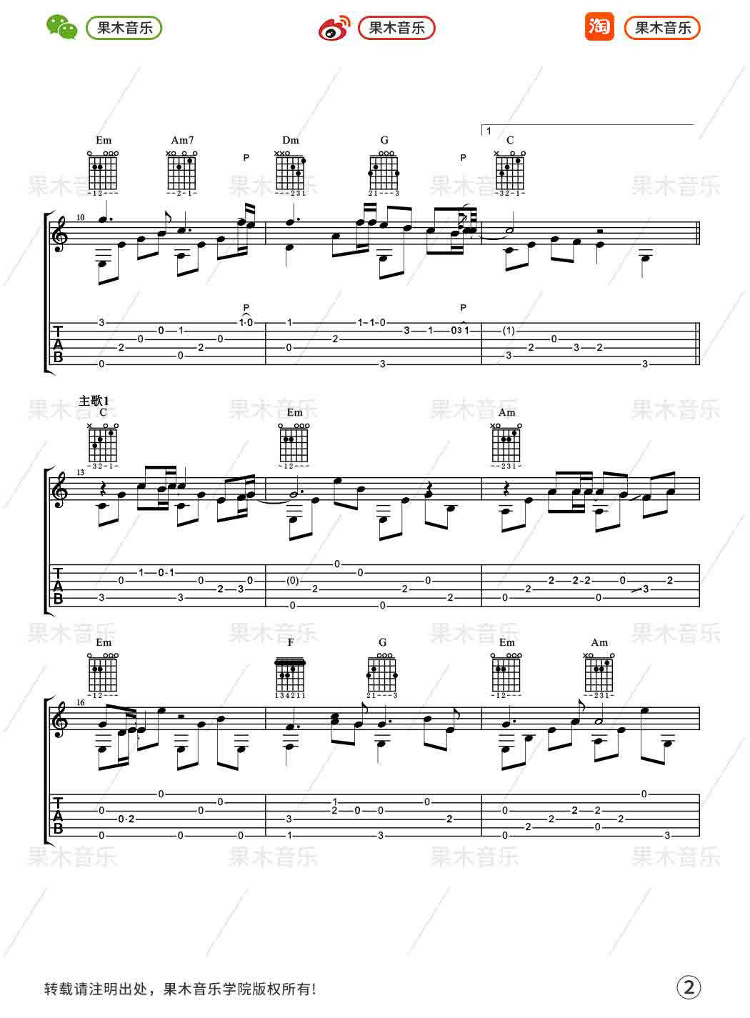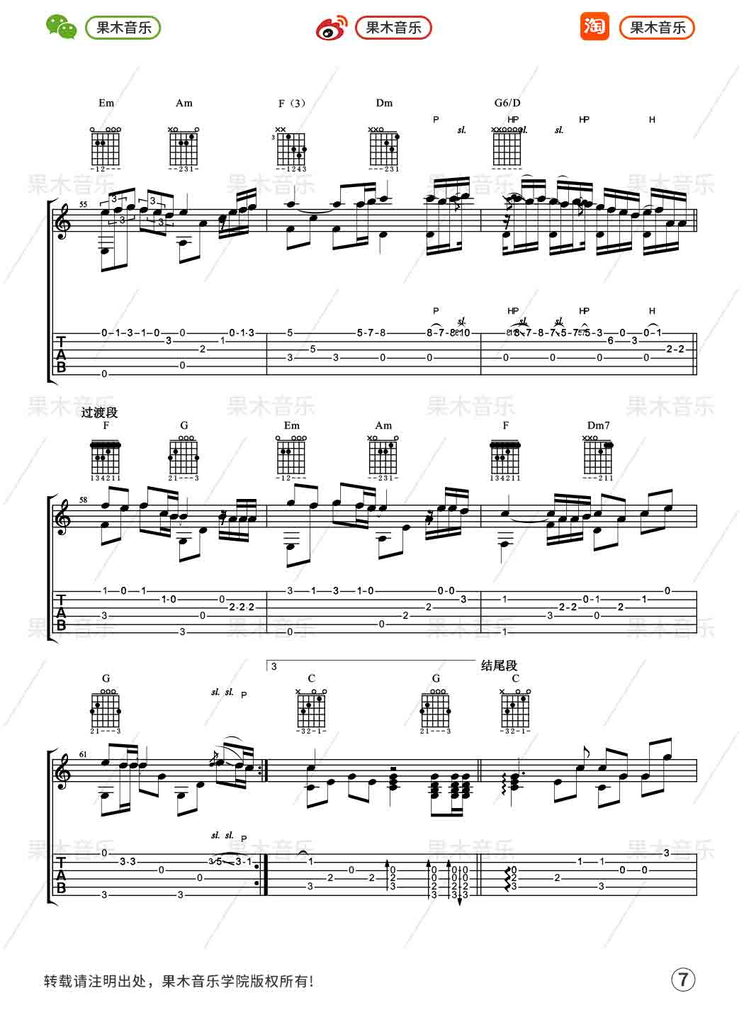 曲谱介绍: 刘若英《后来》吉他独奏谱,果木音乐编配出品,共有8张高清图谱。