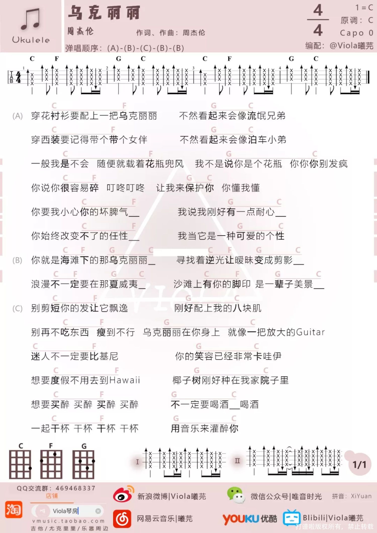 当前位置:琴谱网>尤克里里>乌克丽丽