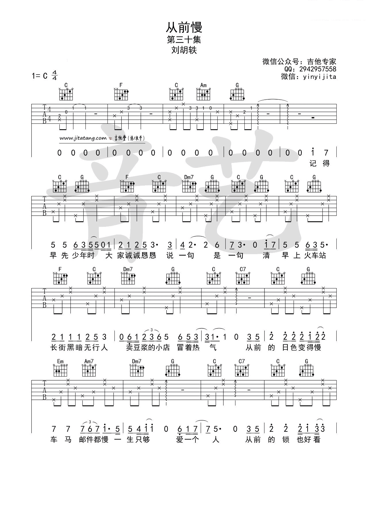 琴谱网为您精心推荐 从前慢 高清图谱