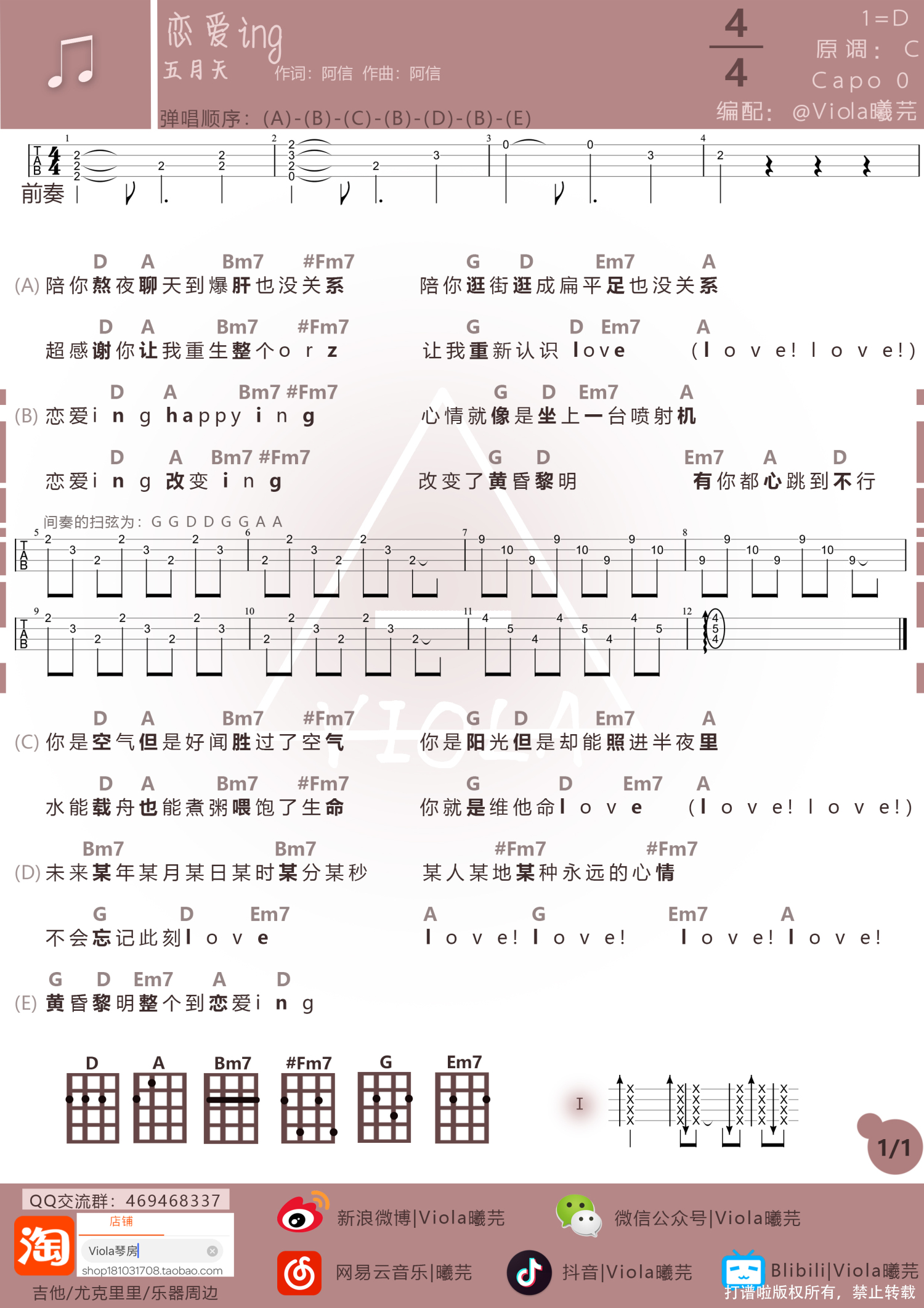 恋爱ing尤克里里谱 - 五月天