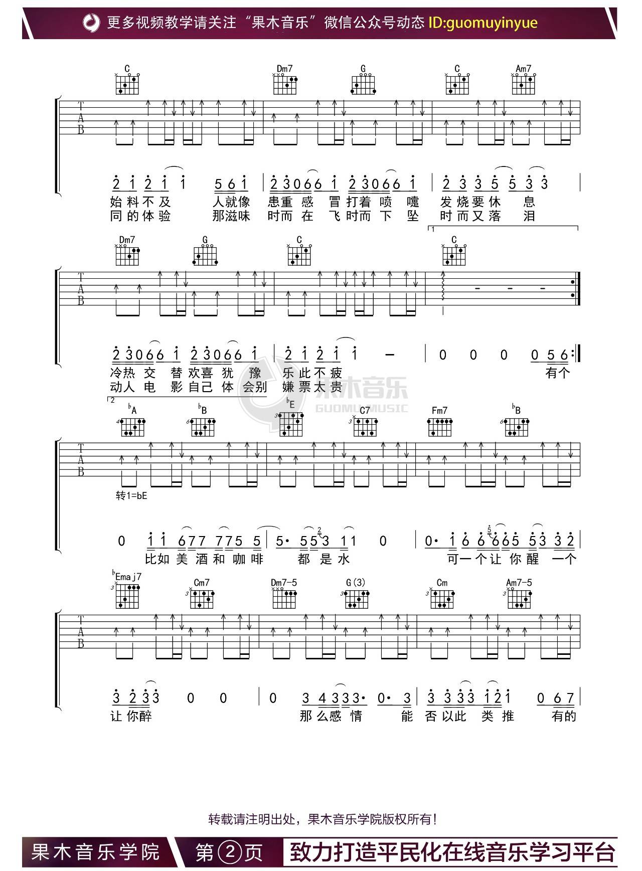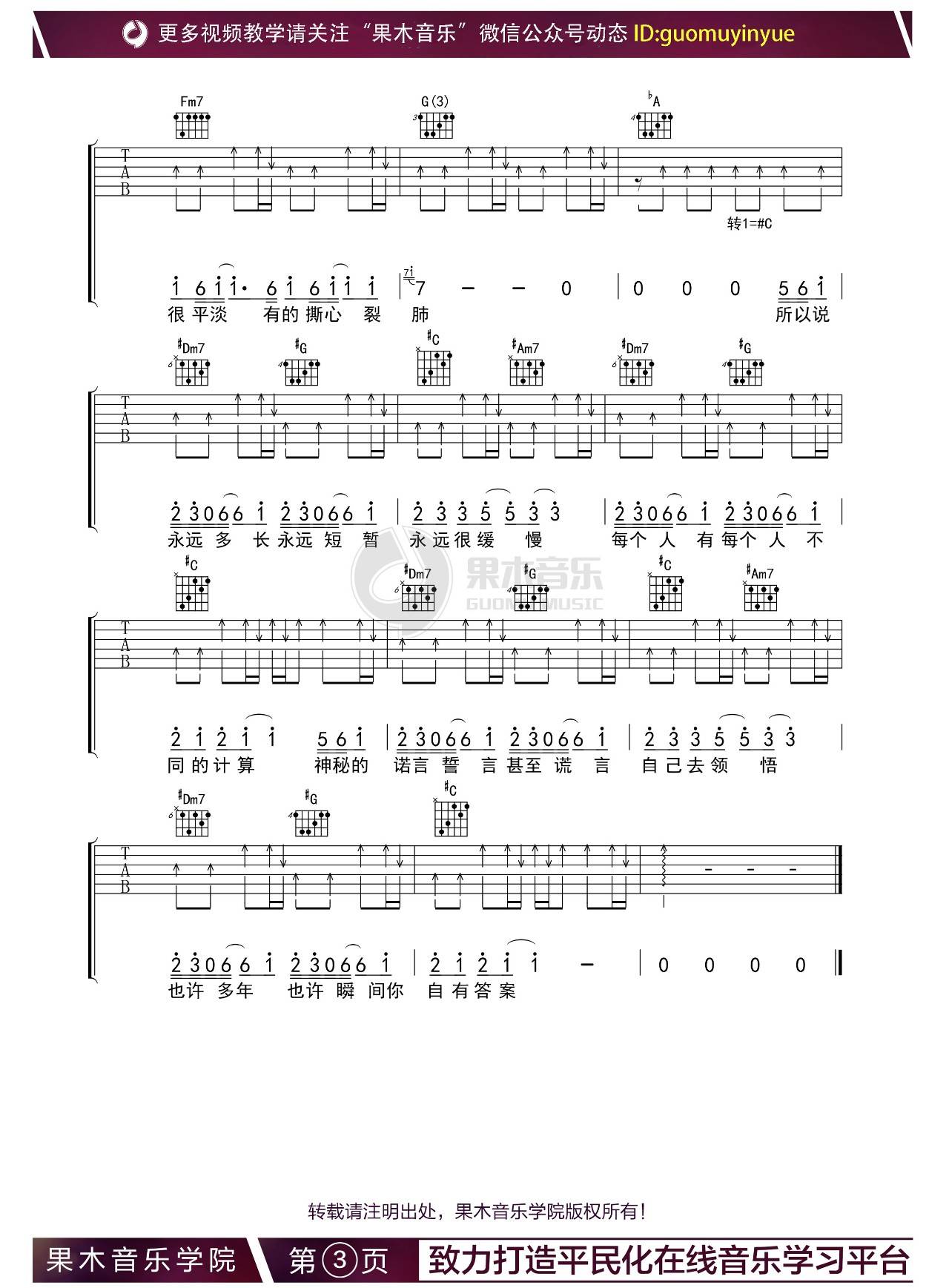 曲谱介绍: 杨坤《答案》吉他弹唱谱,采用B调指法编配,果木浪子编配出品,共有3张高清图谱。