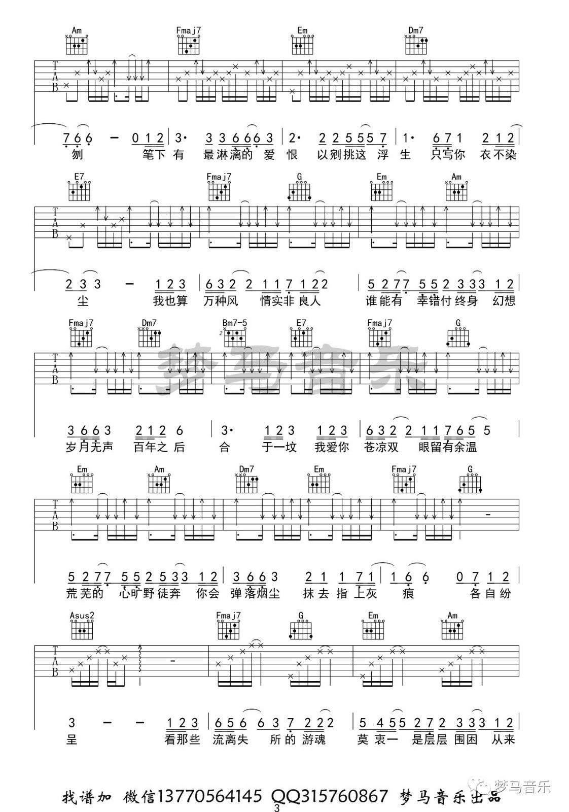 吉他弹唱C调来源:梦马音乐97 浏览2024-01-21 23:27发布图谱共4页