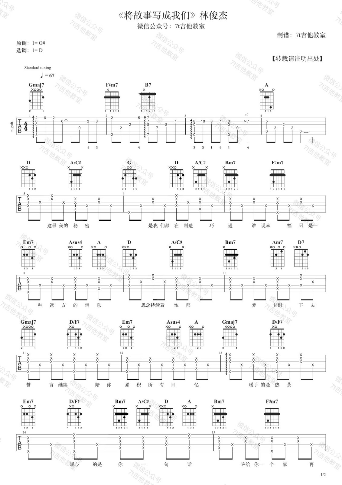将故事写成我们吉他谱 - 林俊杰 - D调吉他弹唱谱