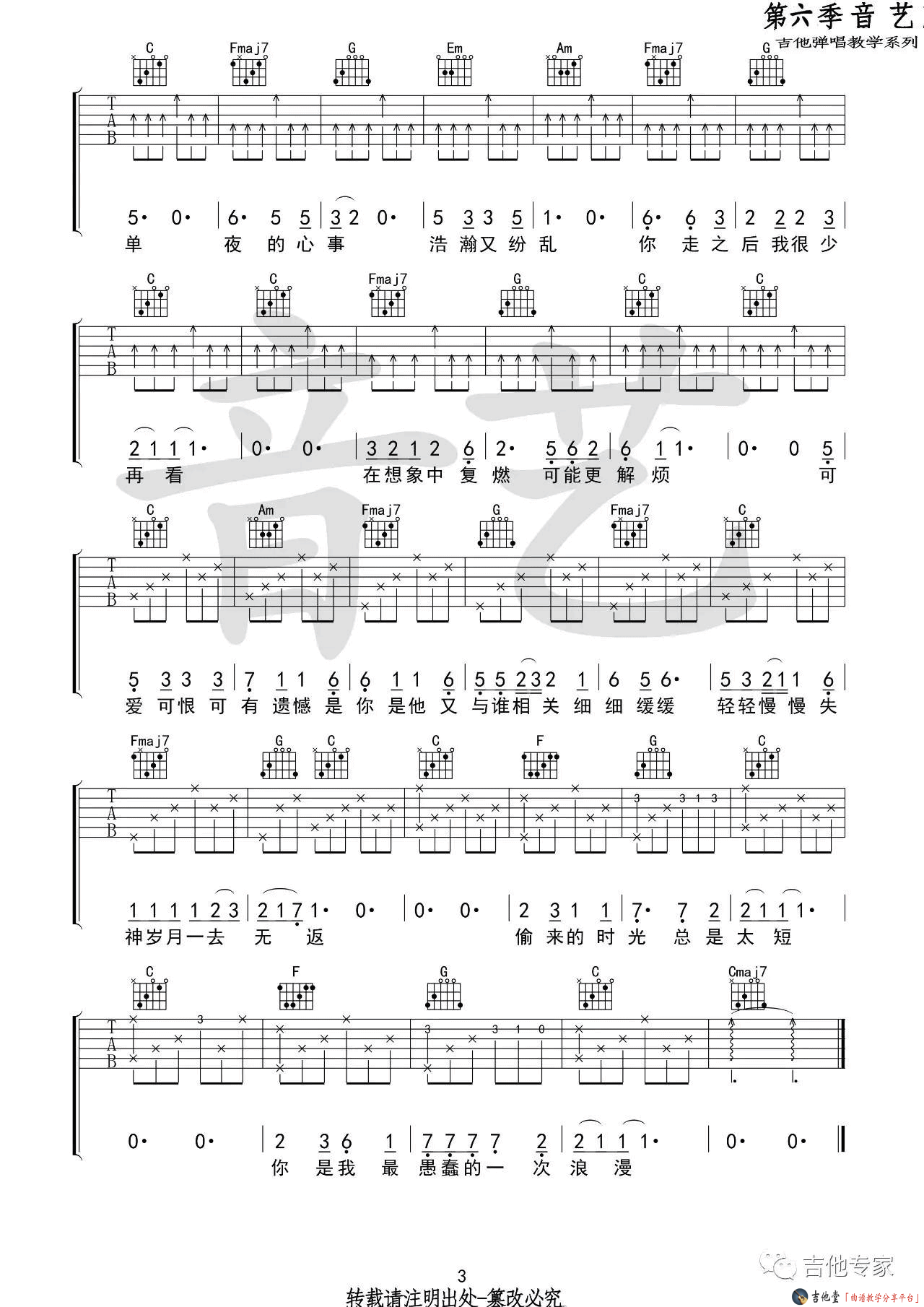 吉他弹唱C调来源:音艺吉他237 浏览2024-01-22 08:09发布图谱共3页