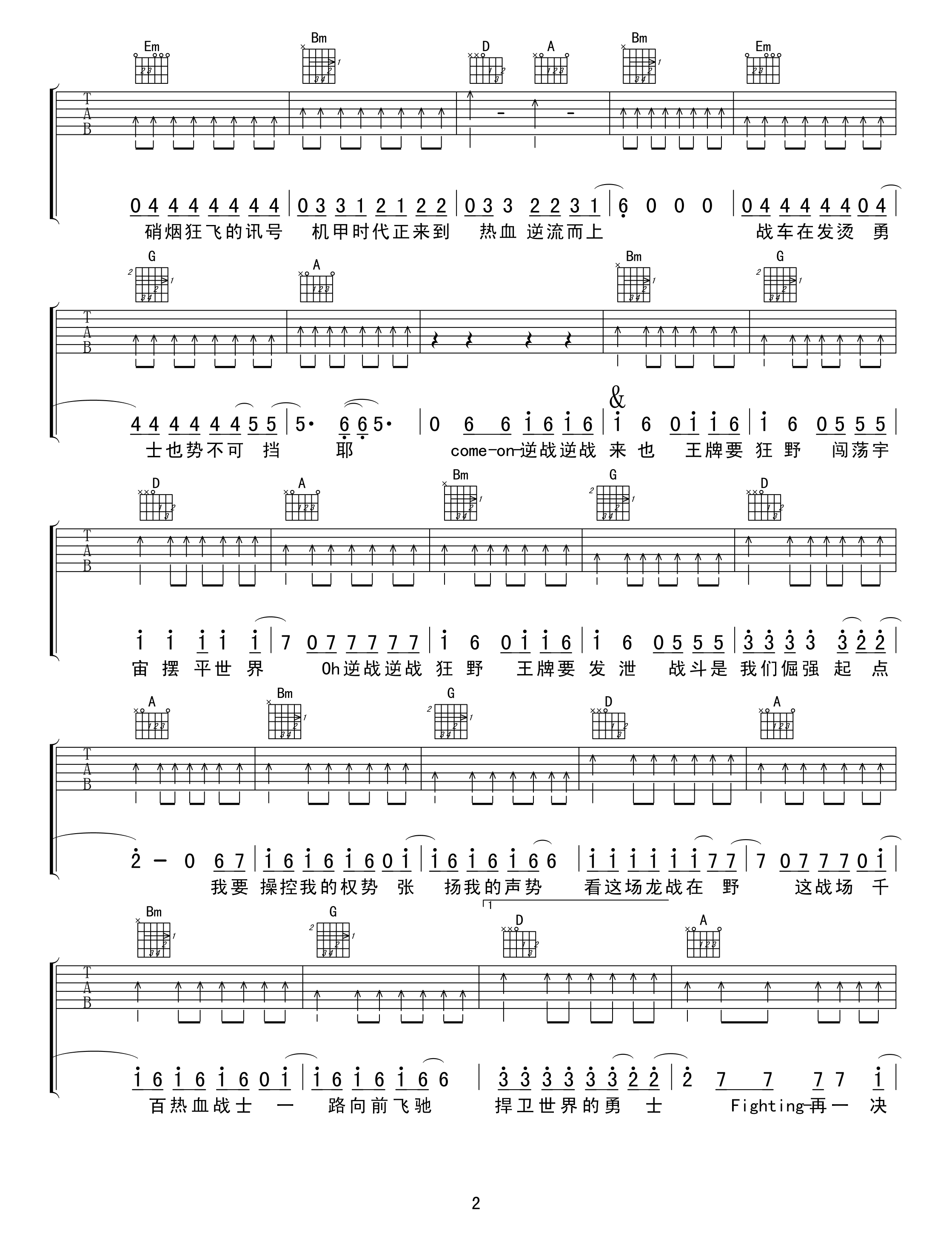 曲谱介绍: 张杰《逆战》吉他弹唱谱,采用F调指法编配,MU+编配出品,共有3张高清图谱。