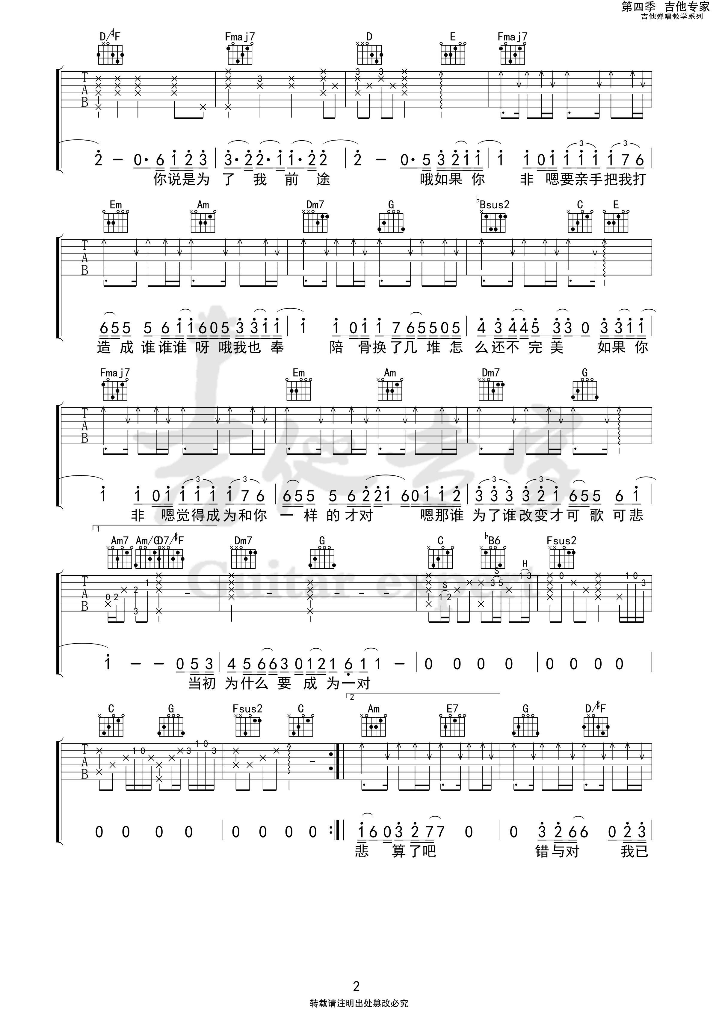 吉他弹唱C调来源:原版吉他专家109 浏览2024-01-22 08:37发布图谱共3页