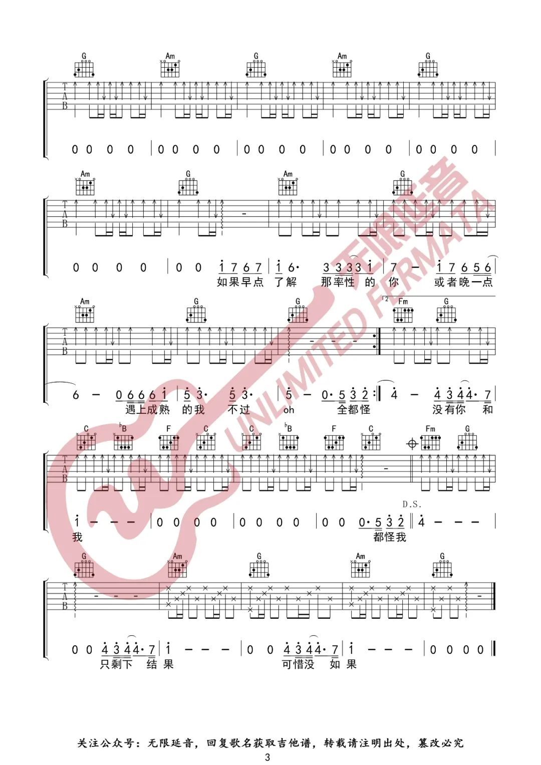 当前位置:琴谱网>吉他弹唱>可惜没如果