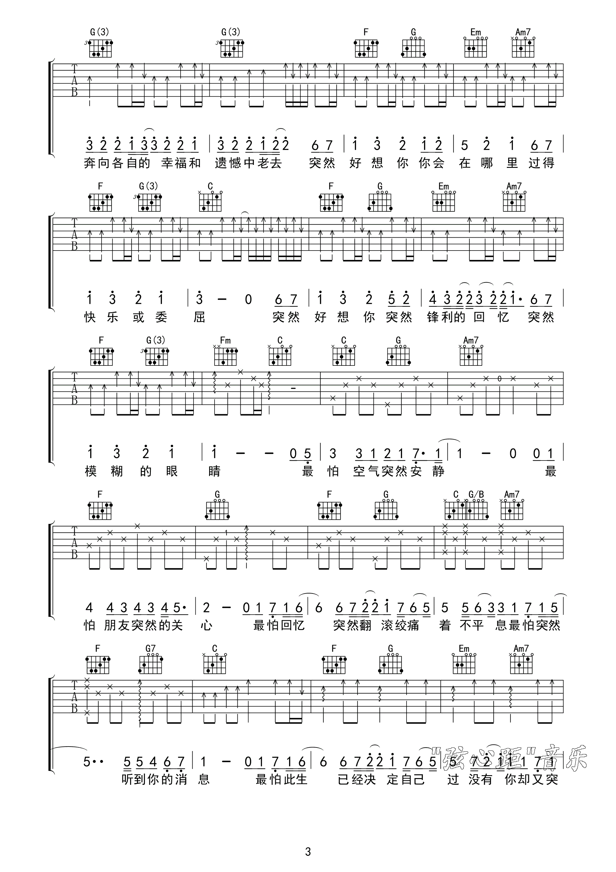 当前位置:琴谱网>吉他弹唱>突然好想你