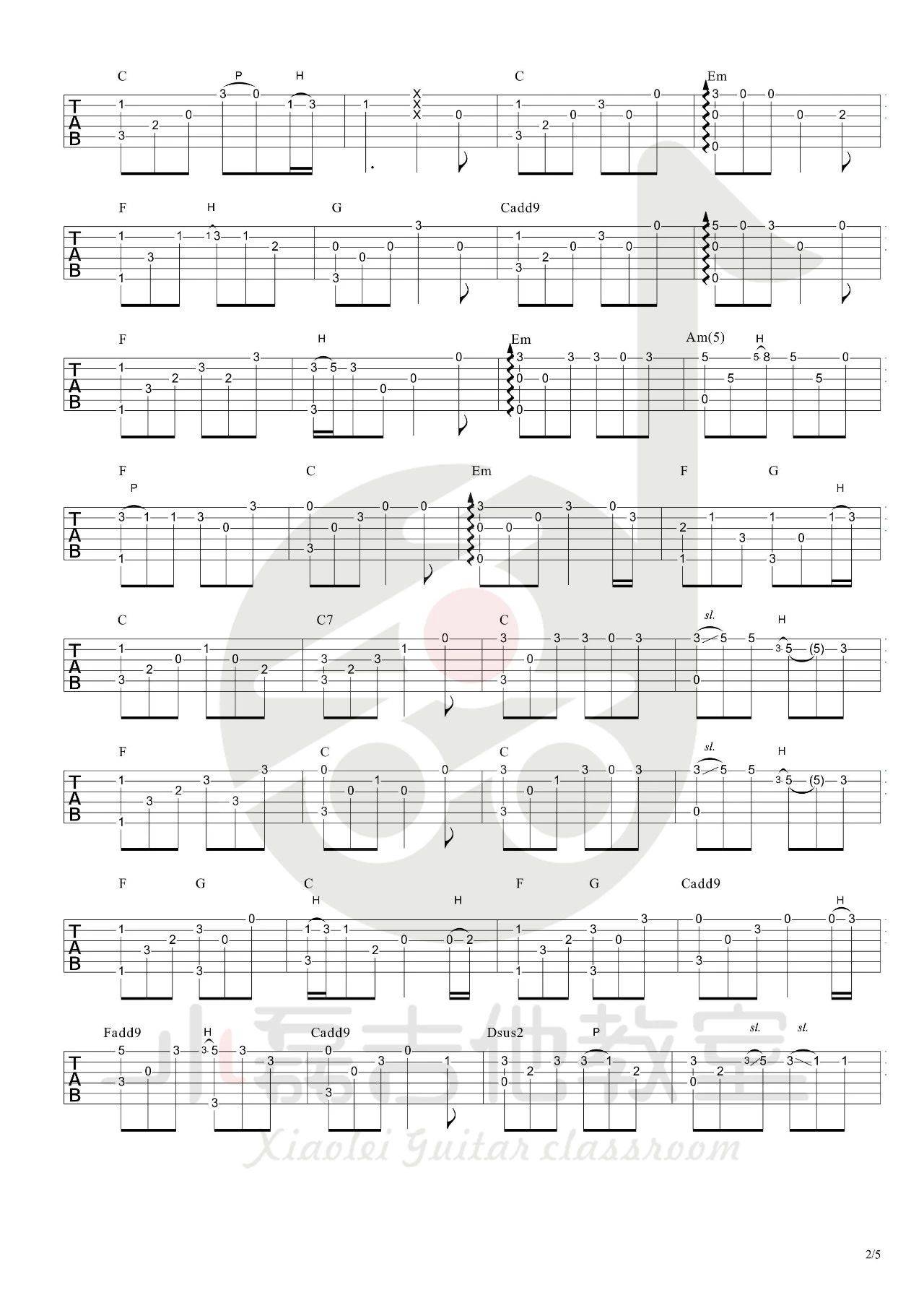 吉他独奏来源:小磊吉他教室226 浏览2024-01-22 09:00发布图谱共5页