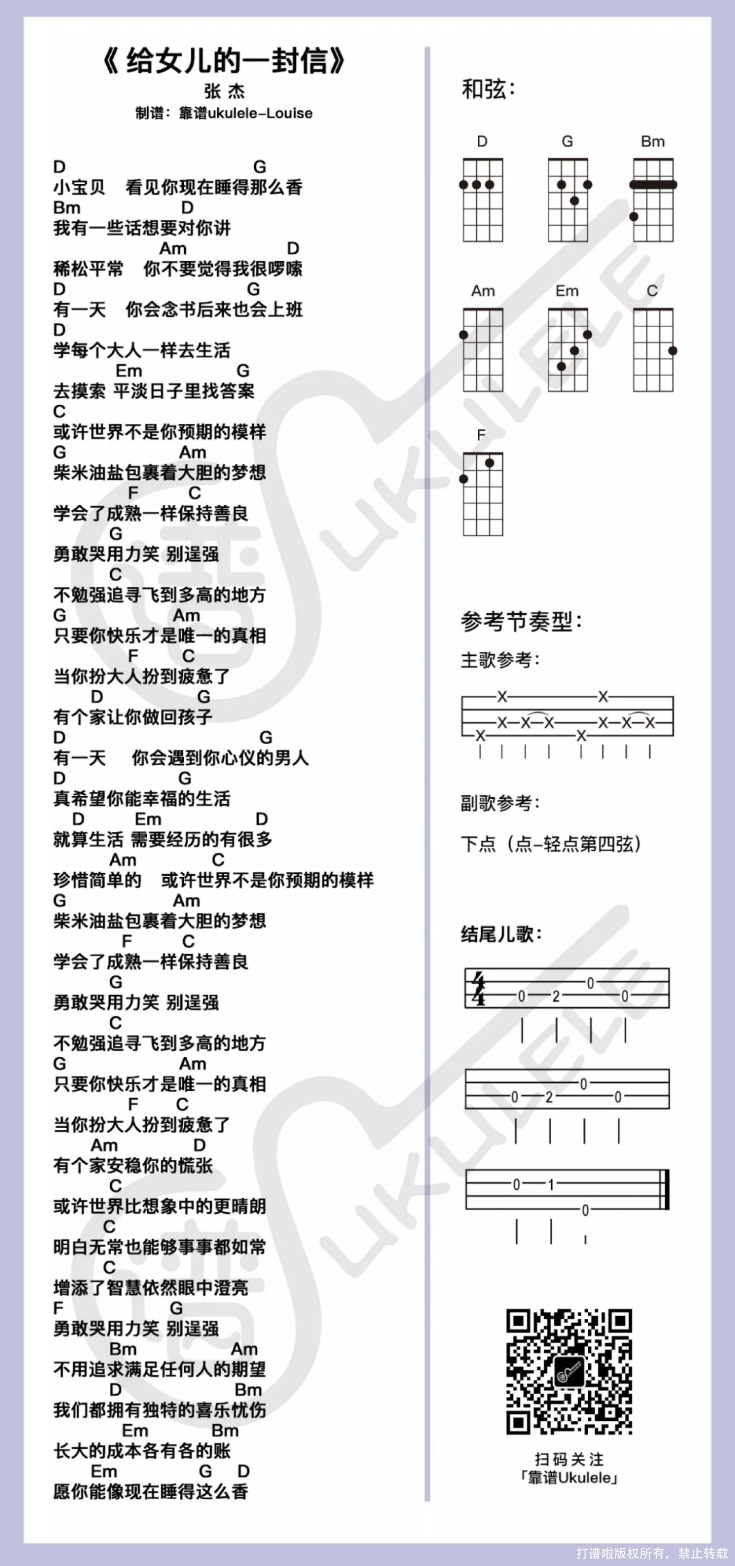 给女儿的一封信尤克里里谱 - 张杰
