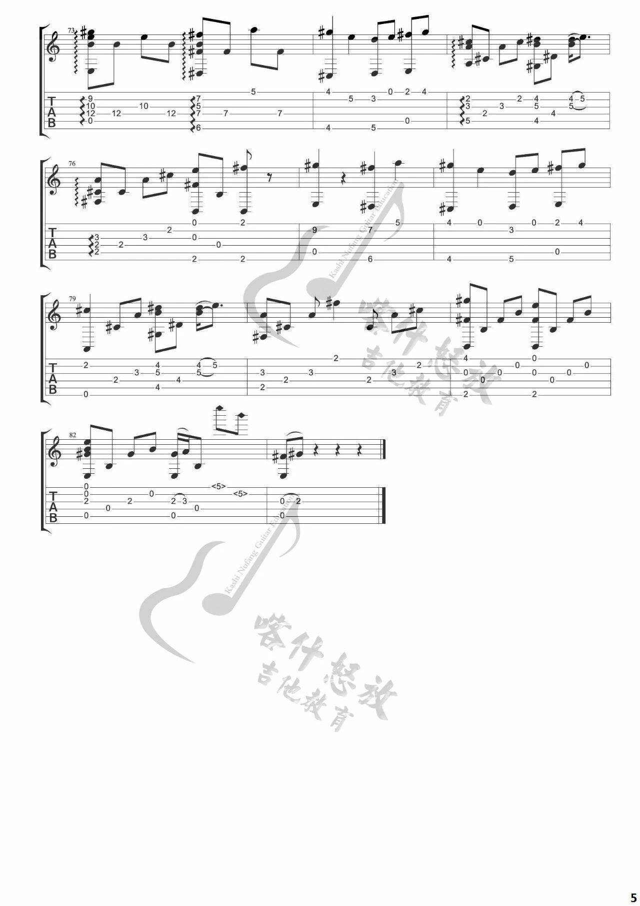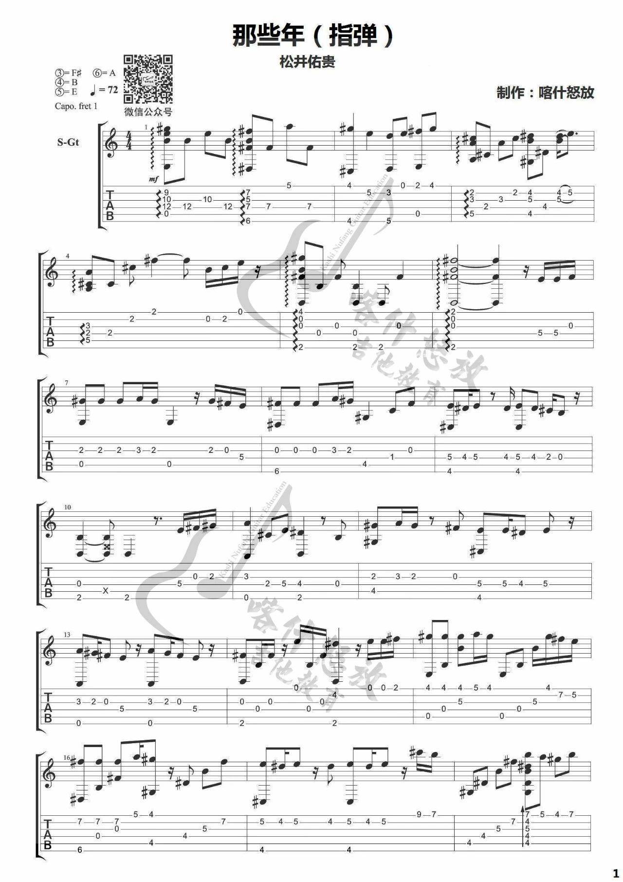 曲谱介绍: 胡夏《那些年》吉他独奏谱,喀什怒放编配出品,共有5张高清图谱。