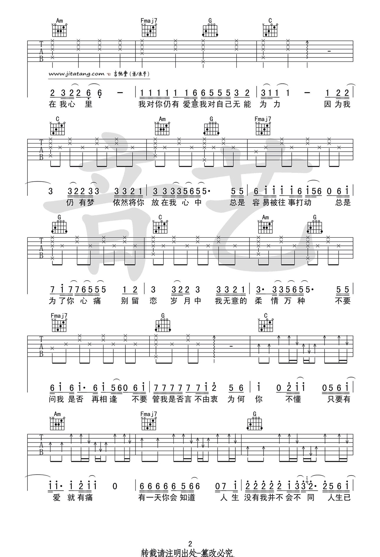 吉他弹唱C调来源:音艺吉他254 浏览2024-01-22 09:49发布图谱共3页