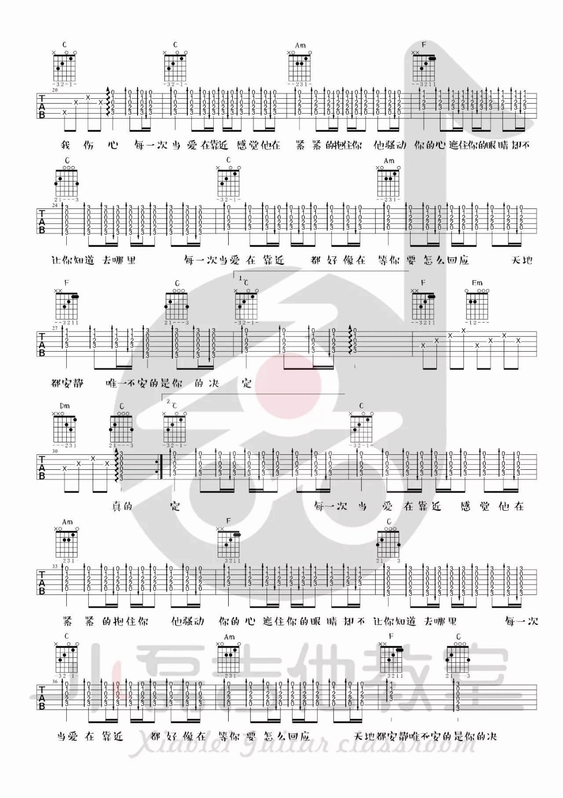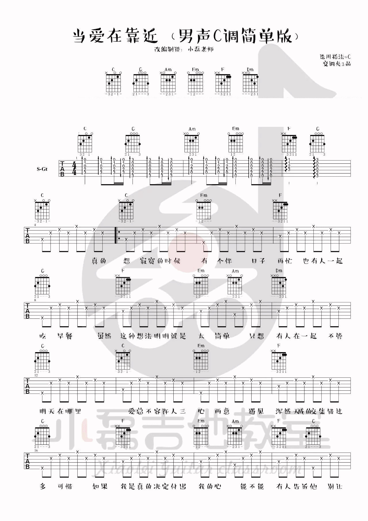 曲谱介绍: 刘若英《当爱在靠近》吉他弹唱谱,采用C调指法编配,小磊吉他编配出品,共有3张高清图谱。