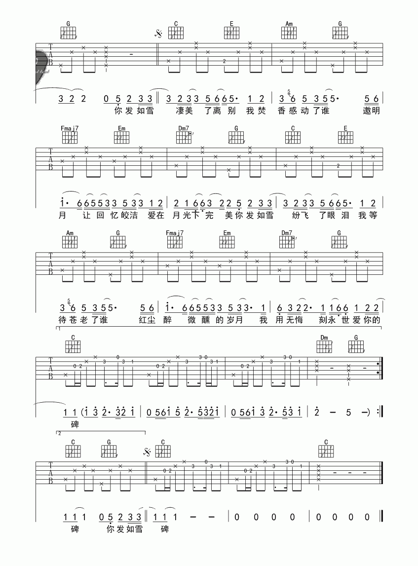 当前位置:琴谱网>吉他弹唱>发如雪