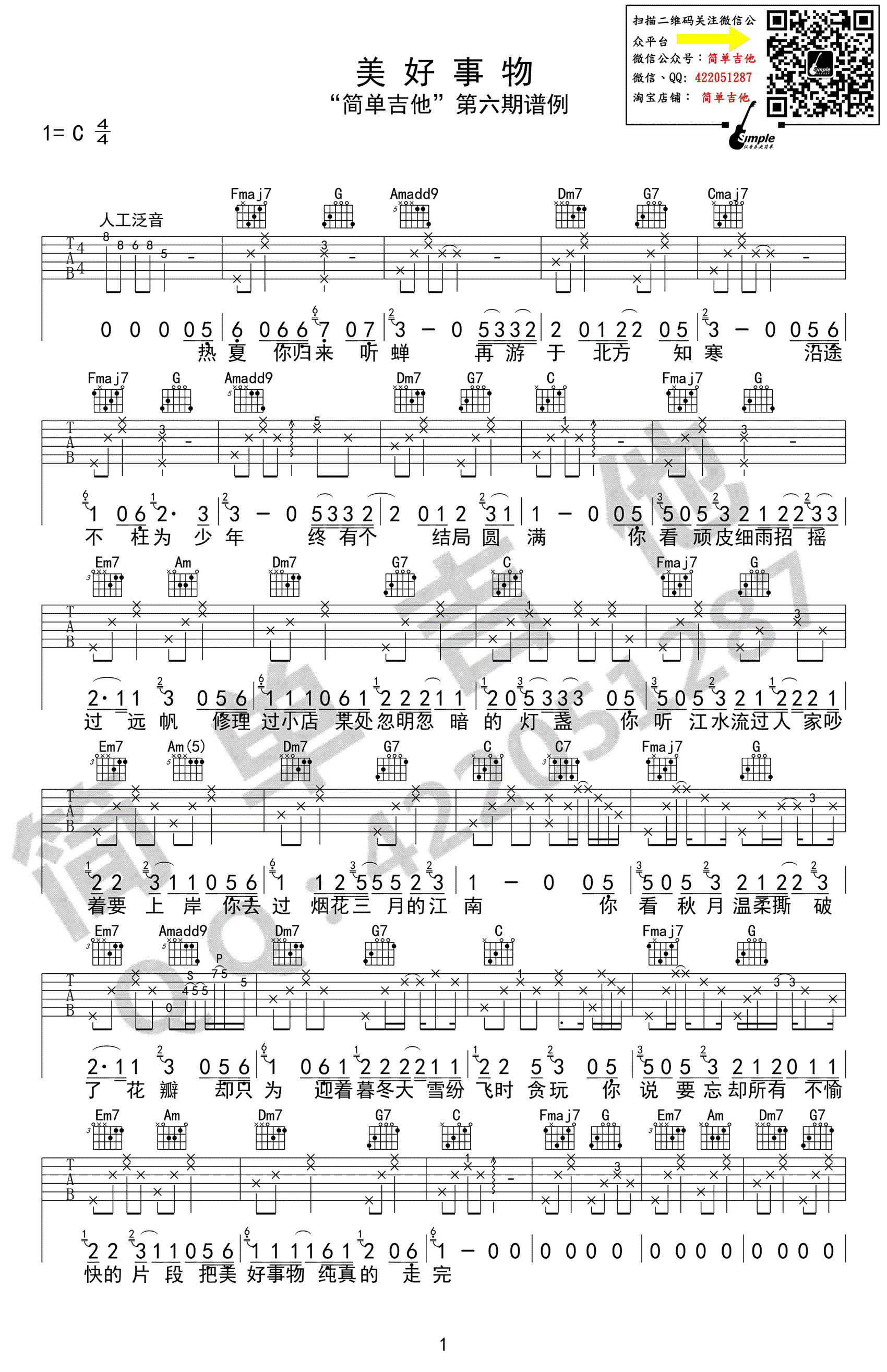 当前位置:琴谱网>吉他弹唱>美好事物
