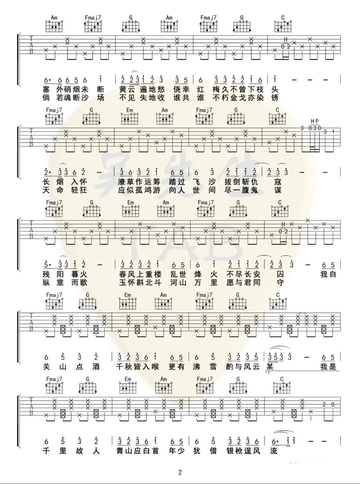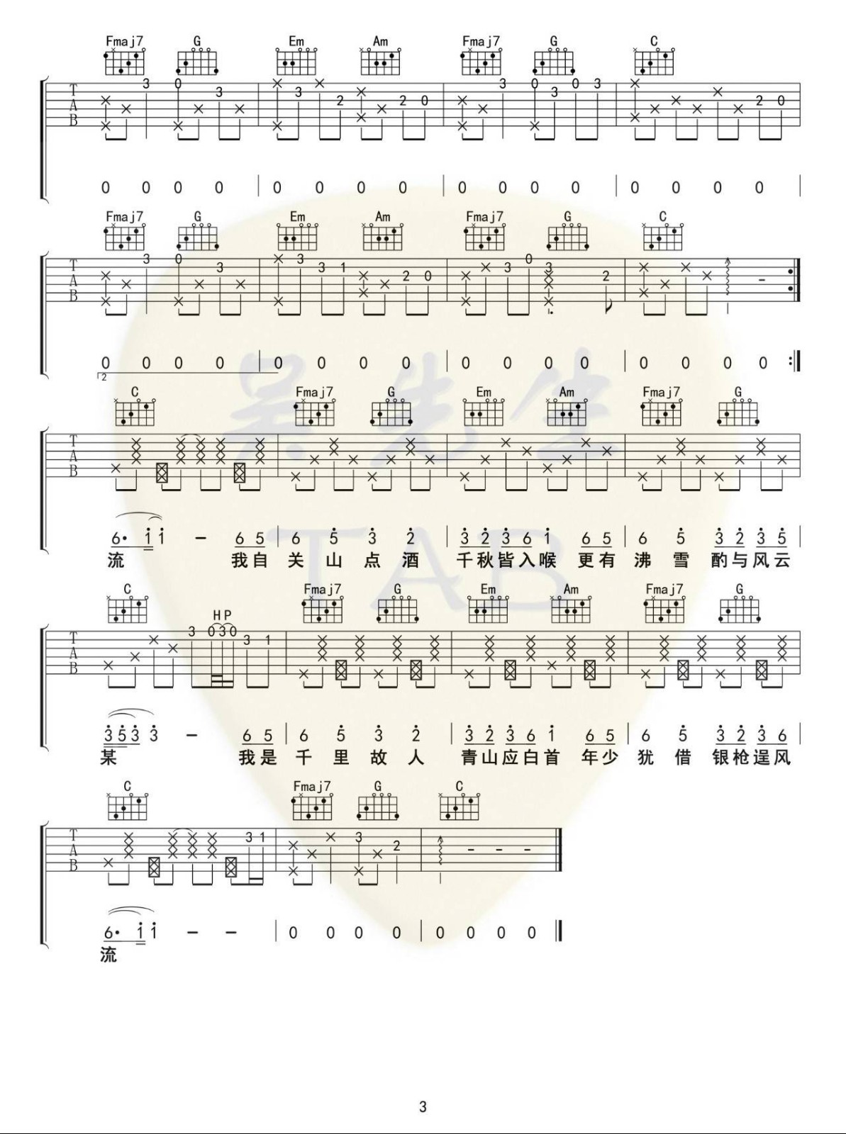 当前位置:琴谱网>吉他弹唱>关山酒