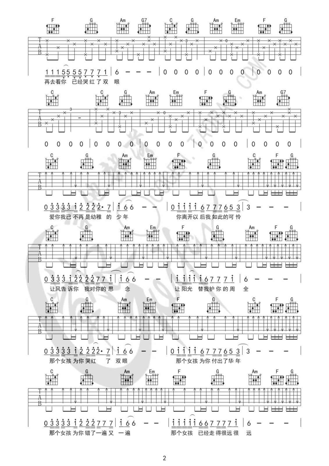 当前位置:琴谱网>吉他弹唱>那个女孩