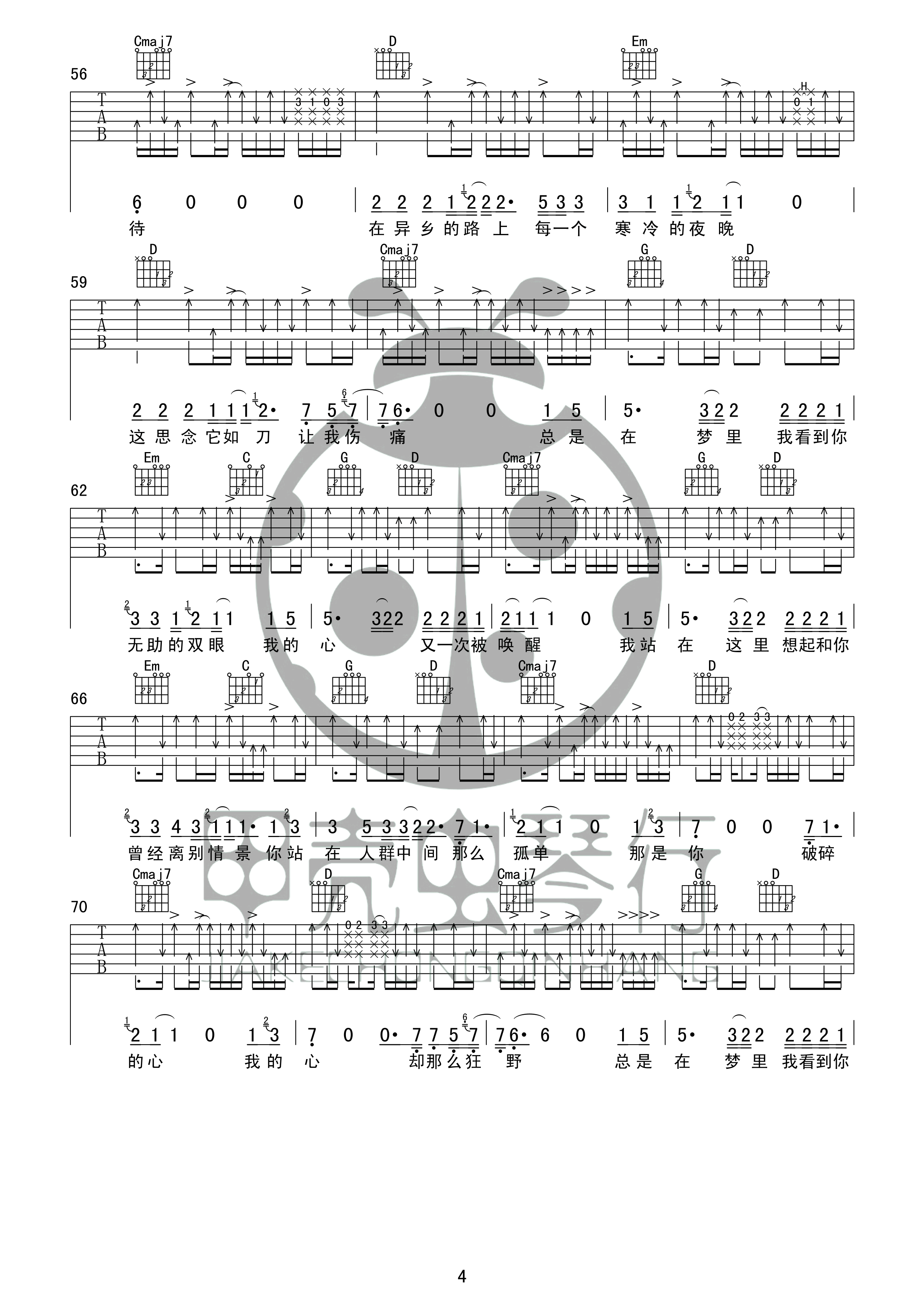 曲谱介绍: 许巍《故乡》吉他弹唱谱,采用B调指法编配,甲壳虫琴行编配出品,共有5张高清图谱。