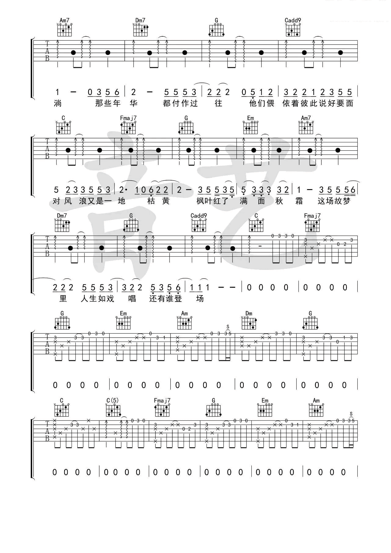 曲谱介绍: 双笙《故梦》吉他弹唱谱,采用C调指法编配,音艺吉他编配出品,共有4张高清图谱。