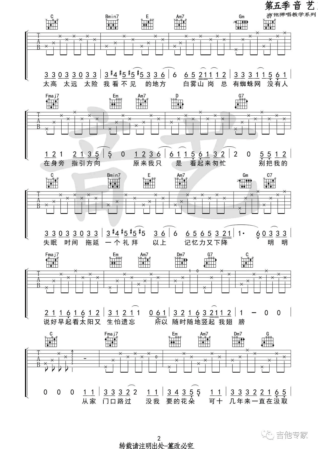 吉他弹唱C调来源:音艺吉他119 浏览2024-01-22 10:56发布图谱共4页