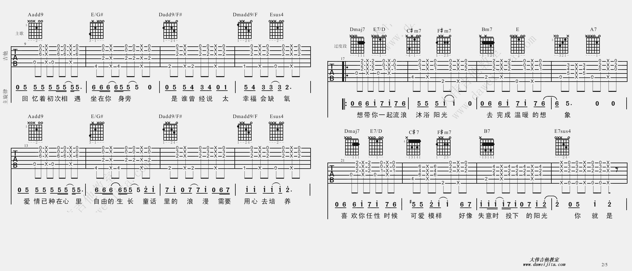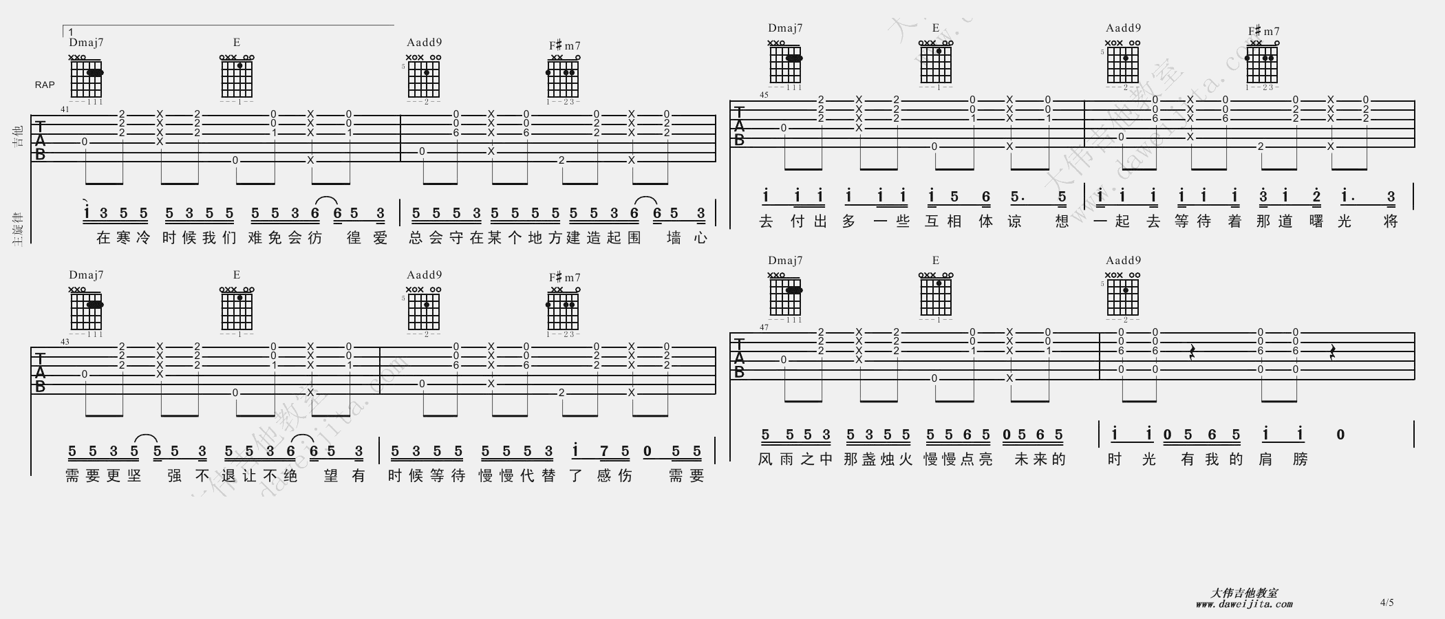 吉他弹唱A调来源:大伟吉他教室187 浏览2024-01-22 10:58发布图谱共5页