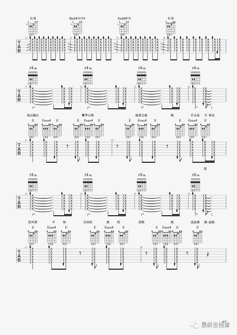 曲谱介绍: 朴树《空帆船》吉他弹唱谱,采用B调指法编配,共有5张高清图谱。