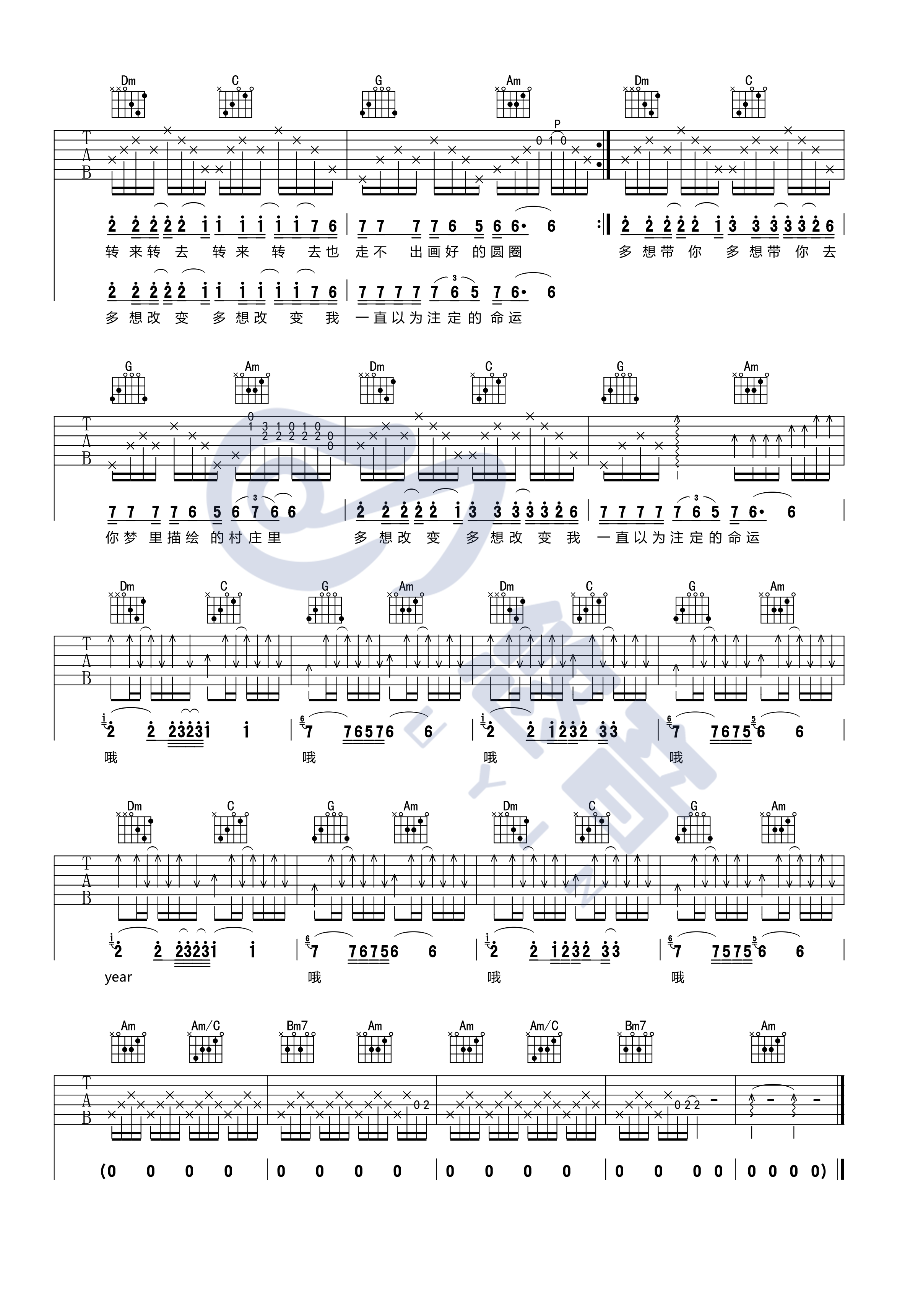 曲谱介绍: 赵雷《明天》吉他弹唱谱,采用C调指法编配,悠音吉他课堂编配出品,共有3张高清图谱。
