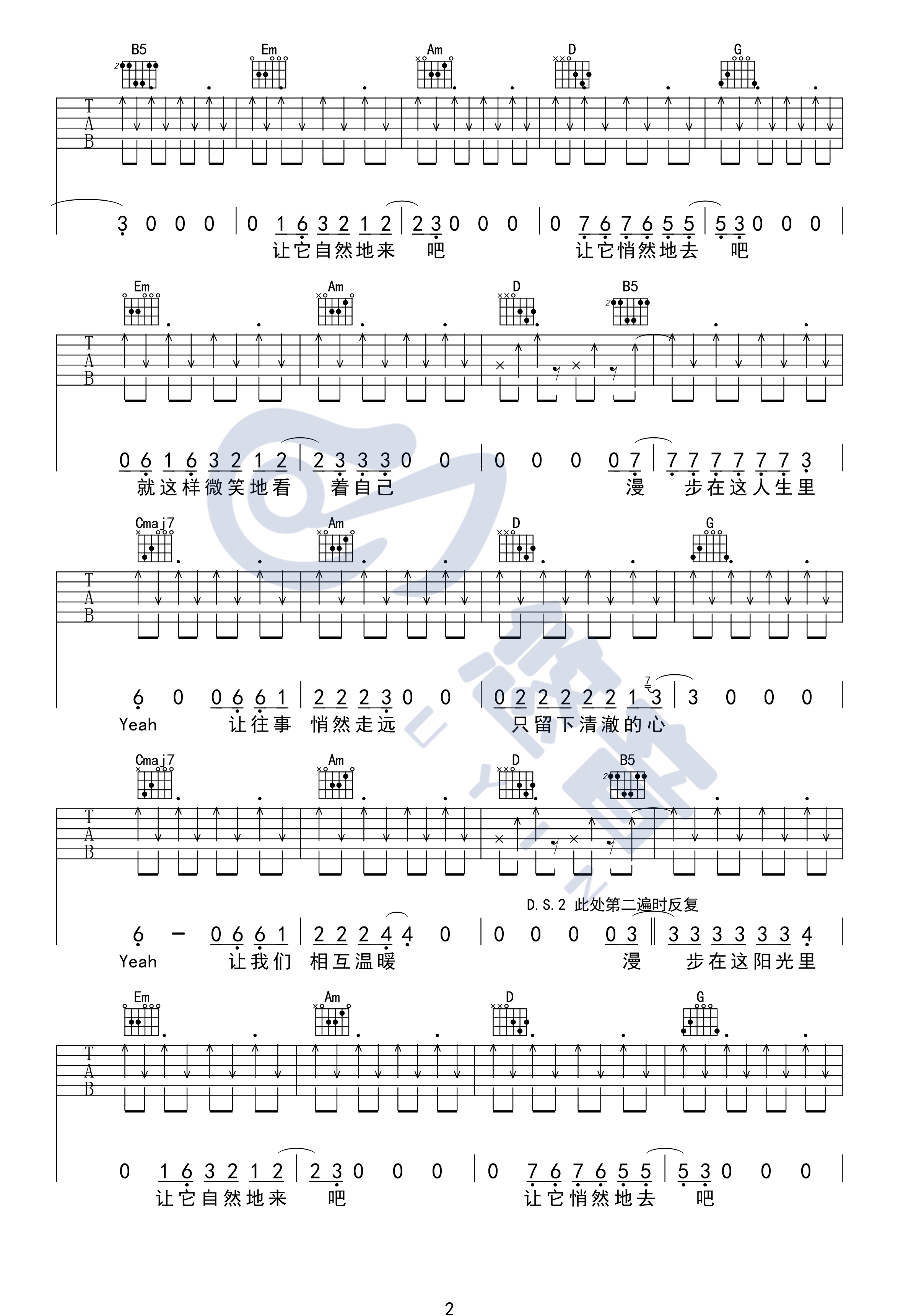 曲谱介绍: 许巍《漫步》吉他弹唱谱,采用G调指法编配,悠音课堂编配出品,共有3张高清图谱。