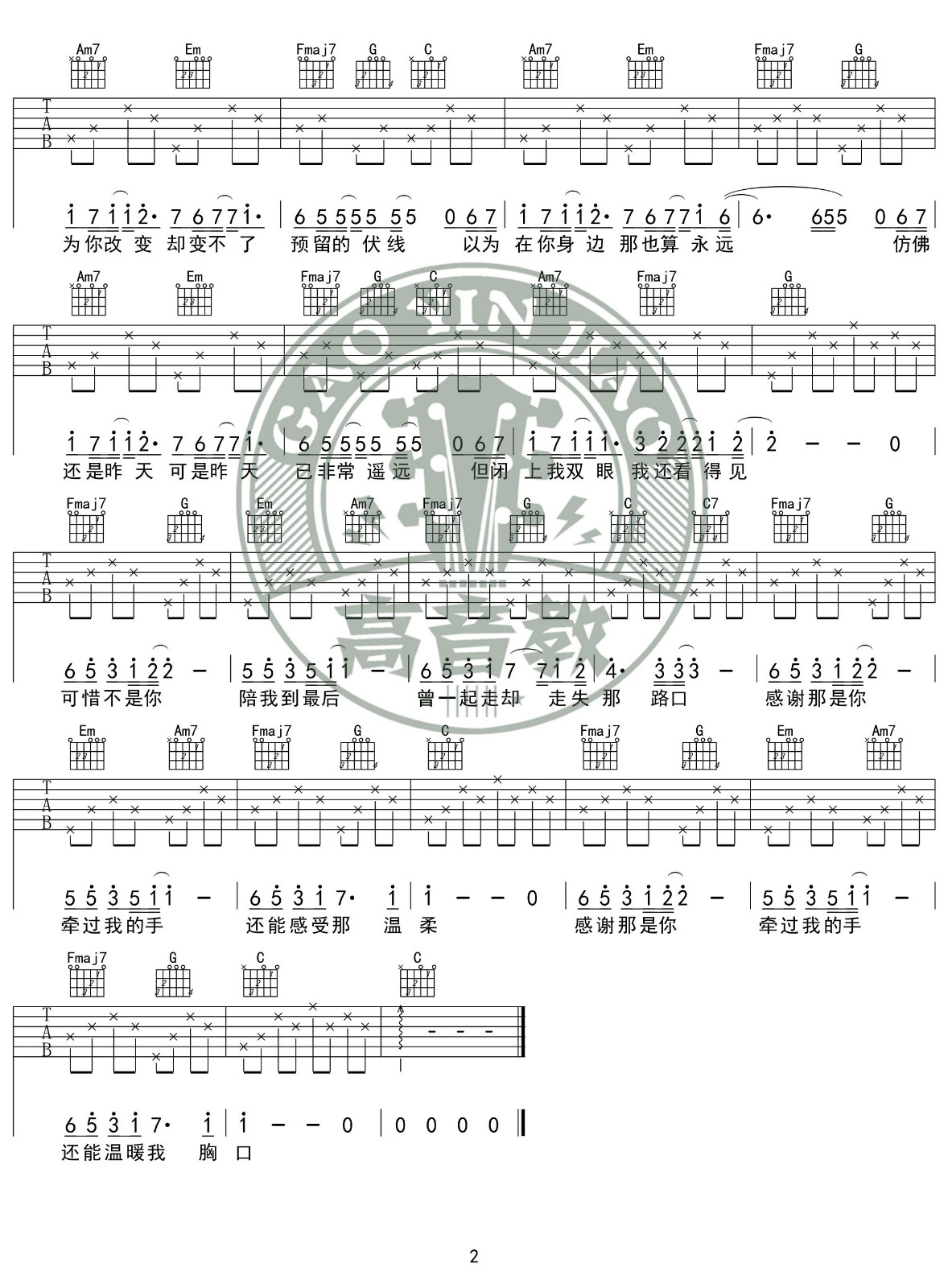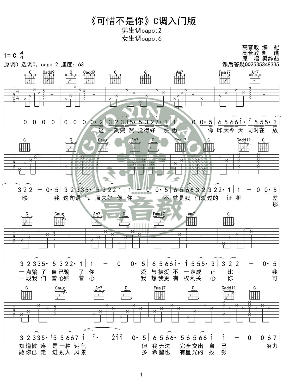吉他弹唱C调来源:高音教乐器107 浏览2024-01-22 11:58发布图谱共2页
