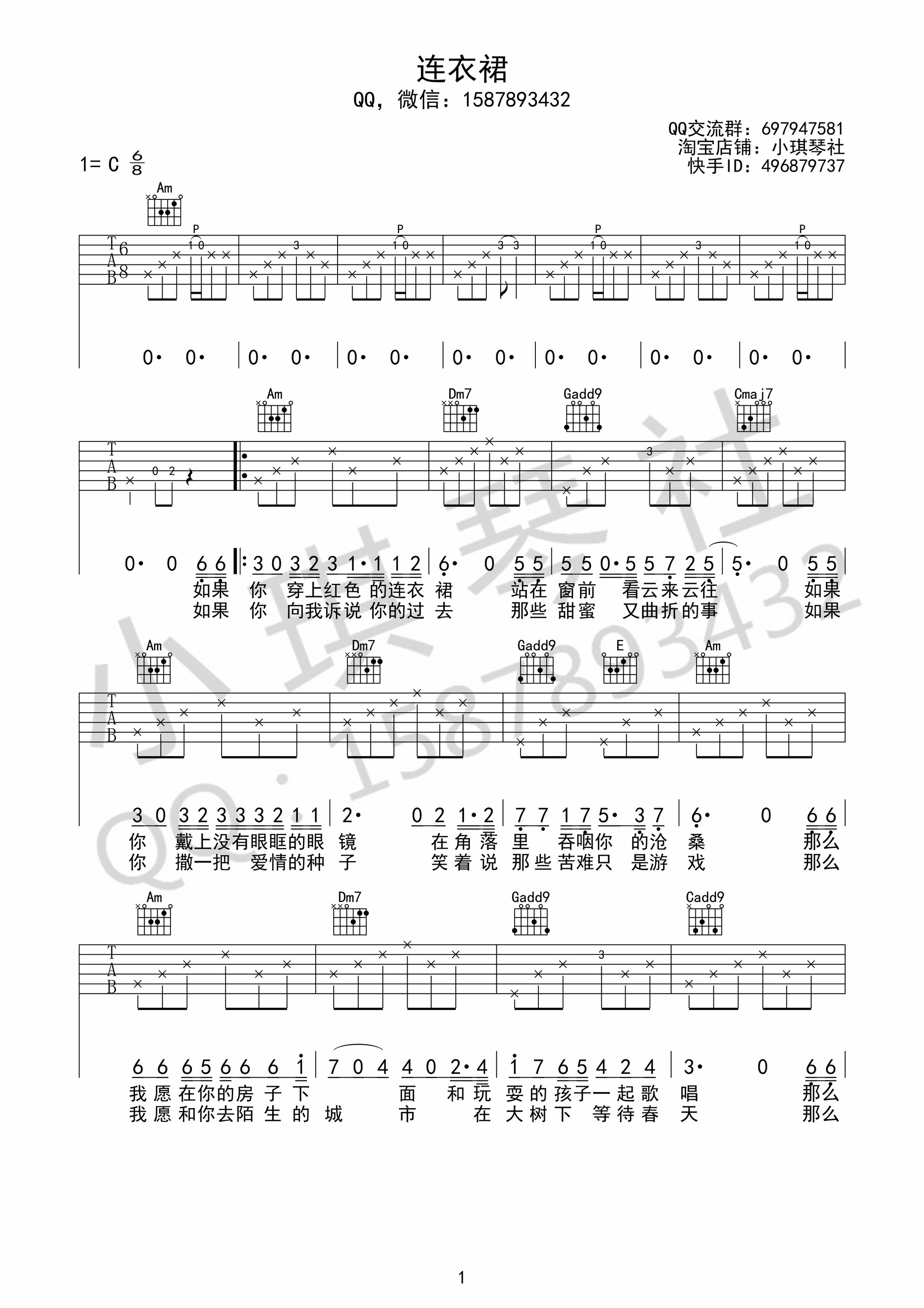 当前位置:琴谱网>吉他弹唱>连衣裙