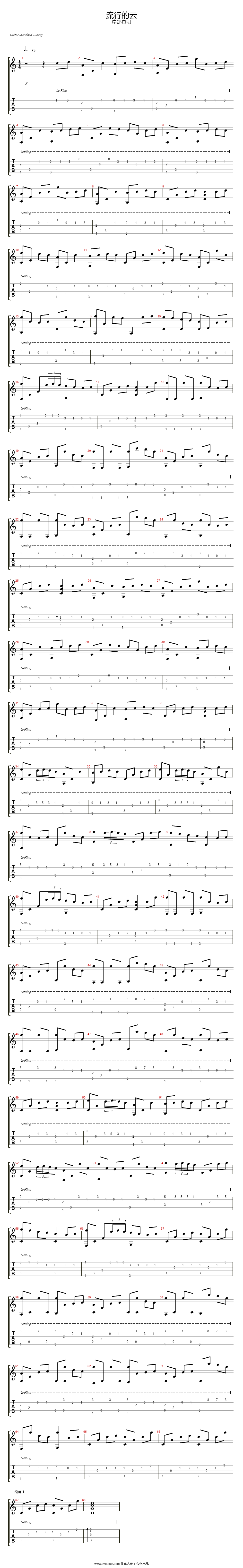 曲谱介绍: 岸部真明《流行的云》吉他独奏谱,共有1张高清图谱,免翻页排版设计。