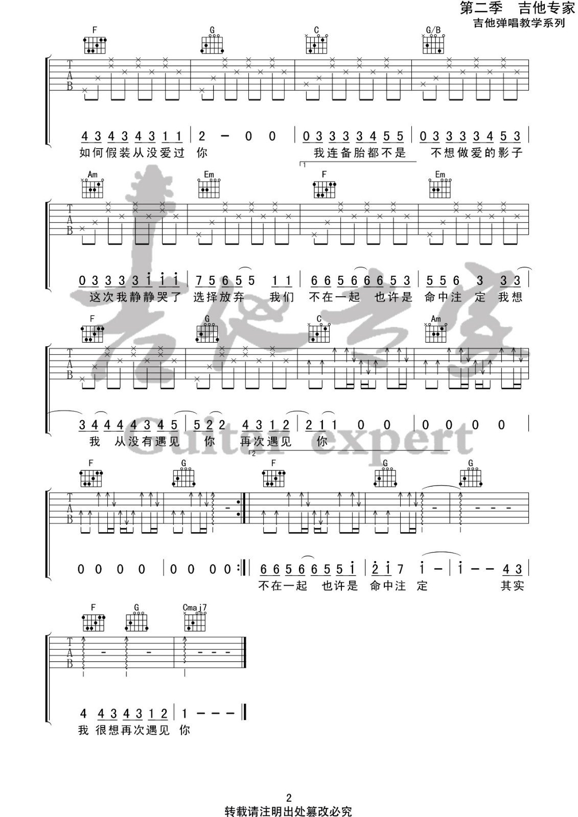 吉他弹唱C调来源:吉他专家250 浏览2024-01-22 12:39发布图谱共2页