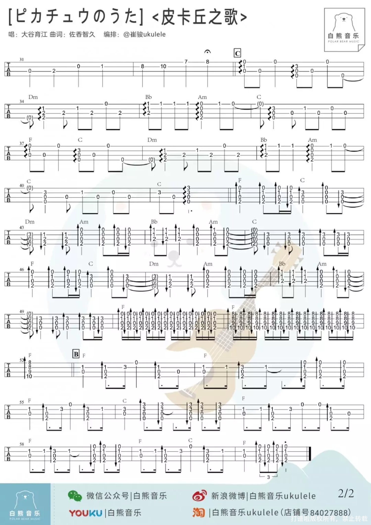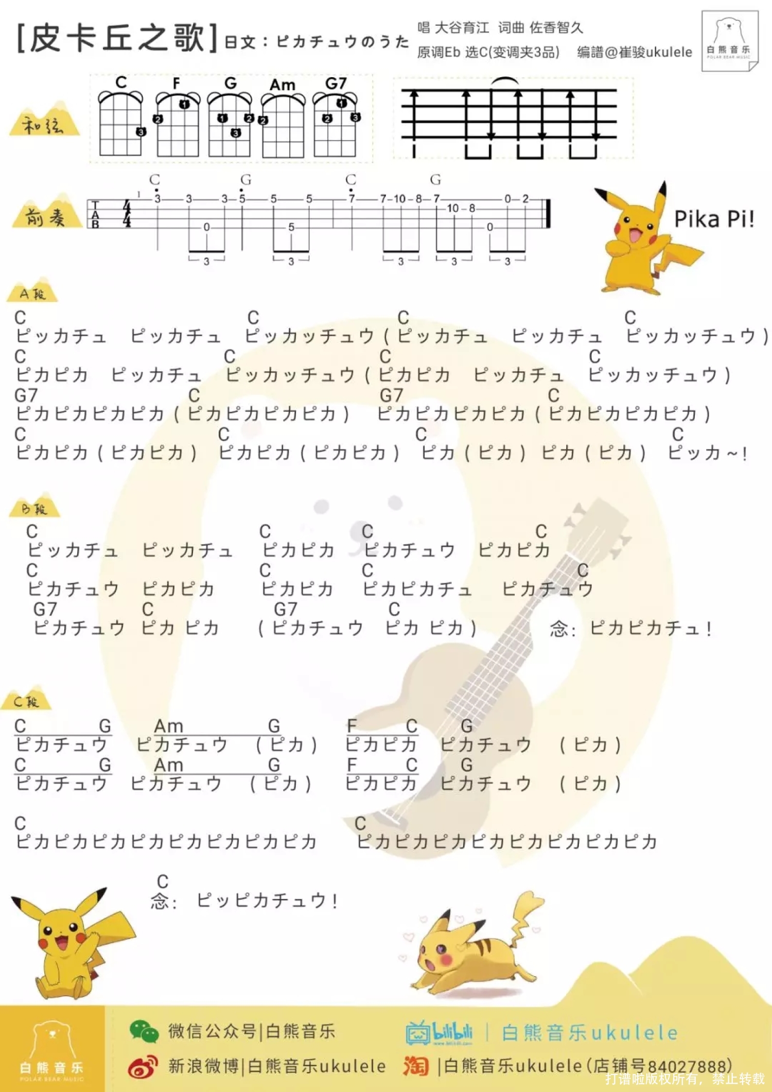 皮卡丘之歌尤克里里谱 - 可爱到爆炸~